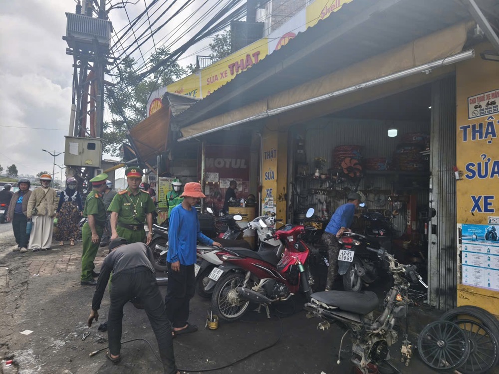 Lực lượng Cảnh sát trật tự hướng dẫn, yêu cầu hộ kinh doanh không lấn chiếm vỉa hè, không để dầu máy, phụ tùng sửa chữa trên vỉa hè làm mất mỹ quan đô thị,vệ sinh môi trường