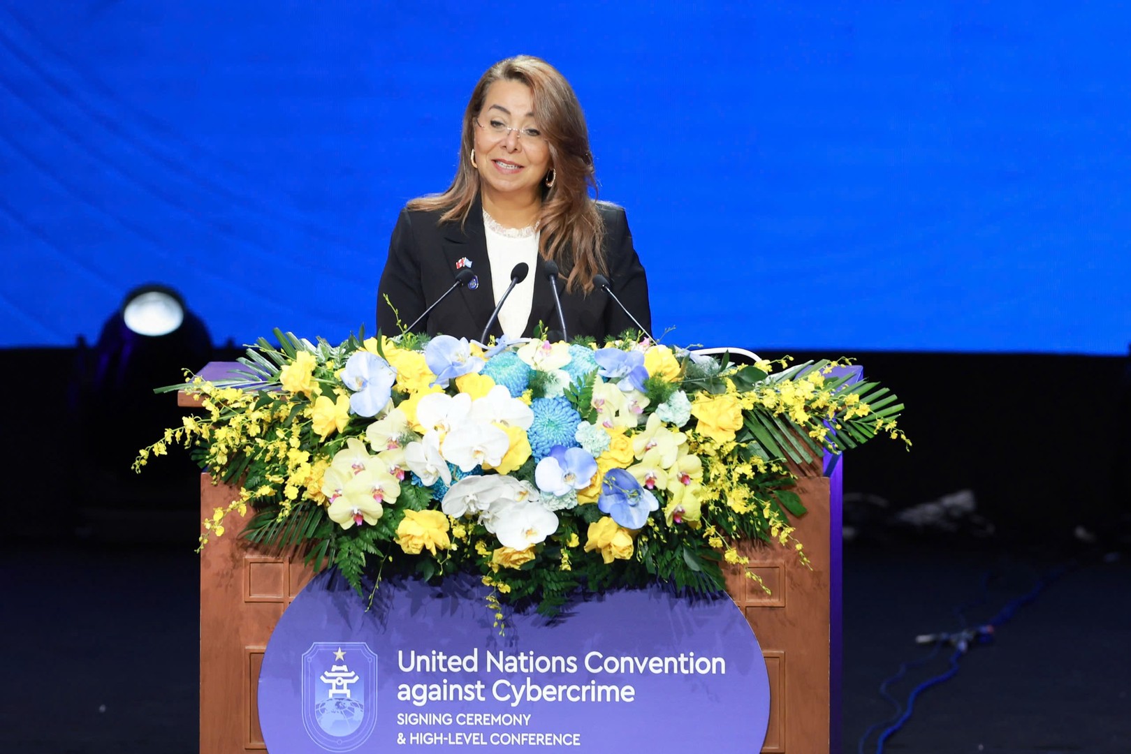 Thay mặt UNODC, bà Ghada Waly, Giám đốc điều hành cho biết, Công ước đáp ứng nhu cầu cấp thiết xây dựng, hài hòa hóa khuôn khổ pháp lý toàn cầu về ứng phó với tội phạm mạng, thiết lập diễn đàn chung để các nước chia sẻ thông tin, hợp tác tư pháp, công nghệ và xây dựng năng lực trong lĩnh vực này.