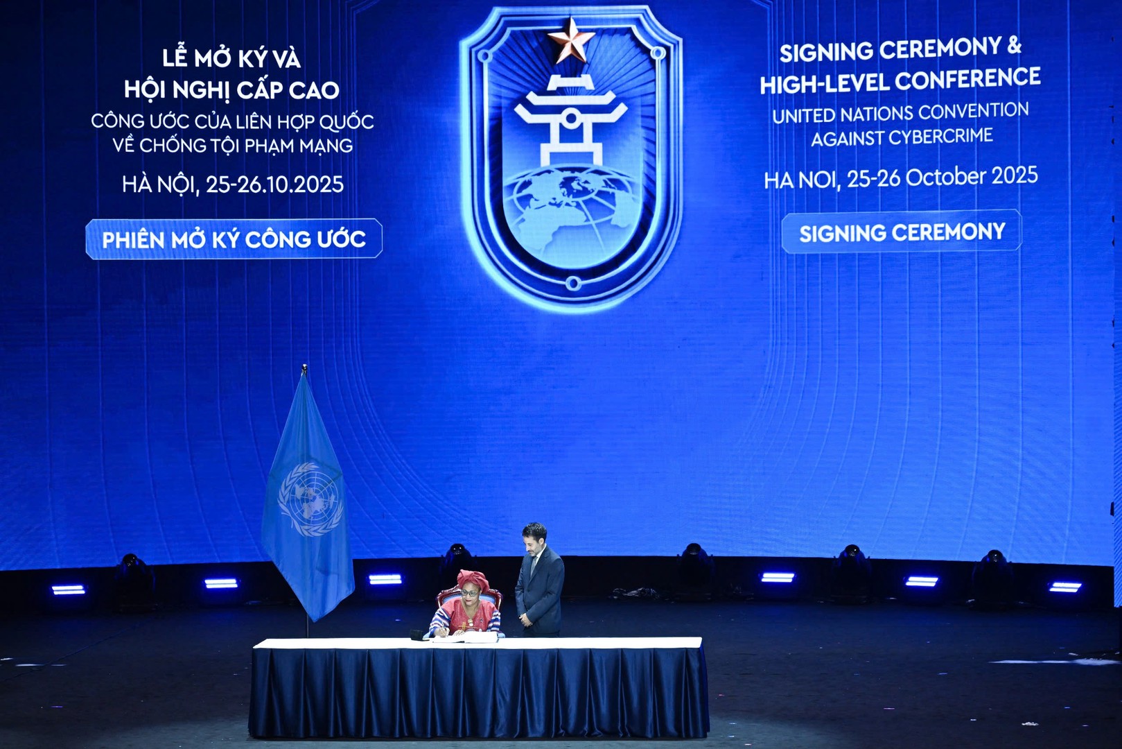 Sau Phiên khai mạc, Chủ tịch nước Lương Cường và Tổng Thư ký LHQ đã chứng kiến đại diện được ủy quyền của Việt Nam và 63 quốc gia ký Công ước. Công ước sẽ tiếp tục được mở ký sau đó tại Trụ sở Liên hợp quốc tại New York. Theo quy định, Công ước sẽ chính thức có hiệu lực nếu có hơn 40 nước ký kết phê chuẩn, hoàn thành thủ tục hiệu lực nội bộ. Sau khi có hiệu lực và được thực thi, Công ước hứa hẹn sẽ trở thành một “công cụ pháp lý quan trọng có tính phổ quát, bao trùm toàn cầu” cho tất cả các quốc gia thành viên hợp tác phòng, chống tội phạm mạng.