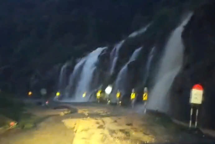 Một số đoạn đường trên tuyến tiếp tục xuất hiện nước và đất đá từ taluy dương đổ xuống gây nguy hiểm, cản trở giao thông.