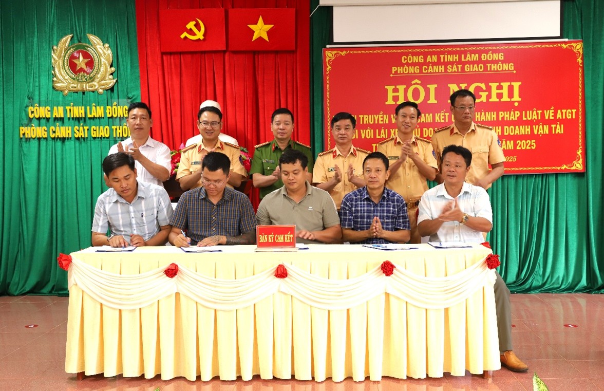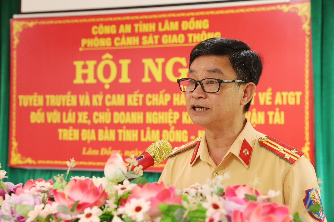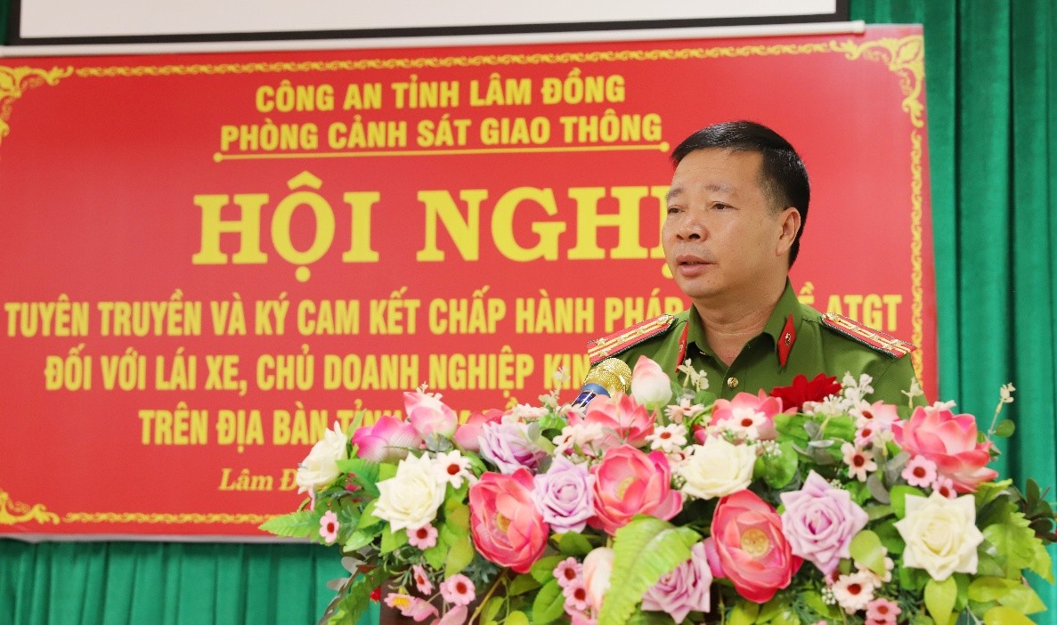 Phát biểu chỉ đạo, Đại tá Nguyễn Tường Vũ đánh giá cao vai trò doanh nghiệp vận tải, góp phần quan trọng vào việc phục vụ nhu cầu đi lại của người dân, thúc đẩy giao thương hàng hóa, du lịch và phát triển kinh tế địa phương. Đồng thời nhấn mạnh, việc xử lý vi phạm pháp luật về trật tự an toàn giao thông là cần thiết nhưng không phải là mục tiêu cuối cùng, mục tiêu cao nhất là bảo vệ tính mạng, tài sản của người dân, sự phát triển bền vững của doanh nghiệp và sự an toàn của cộng đồng. Thời gian tới, đồng chí Phó Giám đốc yêu cầu lực lượng CSGT tiếp tục đẩy mạnh công tác tuyên truyền phổ biến pháp luật và đề nghị các đơn vị vận tải nâng cao ý thức chấp hành pháp luật, quản lý tốt đội ngũ lái xe, nhân viên; đồng hành cùng lực lượng công an đảm bảo trật tự ATGT, góp phần kéo giảm tai nạn. Ngay tại hội nghị, các chủ doanh nghiệp, lái xe đã ký cam kết tuân thủ quy định pháp luật về trật tự an toàn giao thông.