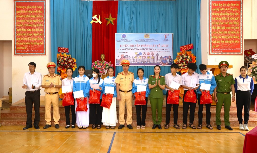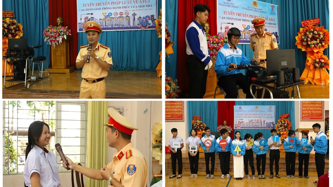 Tại buổi tuyên truyền, Đội CSGT đường bộ số 5 – Nam Gia Nghĩa đã thông tin về tình hình trật tự an toàn giao thông và tai nạn giao thông liên quan đến lứa tuổi học sinh trên địa bàn tỉnh cũng như trên địa bàn xã, nguyên nhân xảy ra tai nạn giao thông, các lỗi học sinh, phụ huynh thường xuyên vi phạm như không đủ tuổi điều khiển phương tiện giao thông, giao xe cho người không đủ tuổi diều khiển. Thông qua đó phổ biến các nội dung cơ bản về Luật trật tự an toàn giao thông đường bộ, Nghị định 168/NĐ-CP của Chính phủ quy định về xử phạt vi phạm hành chính trong lĩnh vực giao thông đường bộ và hướng dẫn các em học sinh kỹ năng lái xe an toàn trên máy mô phỏng. Qua đó, nhằm góp phần nâng cao ý thức, hình thành thói quen chấp hành các quy định của pháp luật về trật tự an toàn giao thông của các em học sinh và giáo viên. Bên cạnh đó, lực lượng CSGT, Công an xã Nhân Cơ và Công ty Honda Tiến Phát đã trao tặng 20 suất quà cho các em học sinh học giỏi, có hoàn cảnh khó khăn.