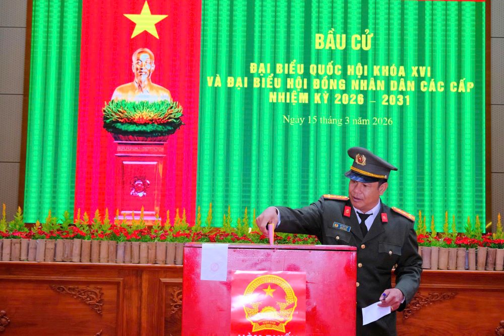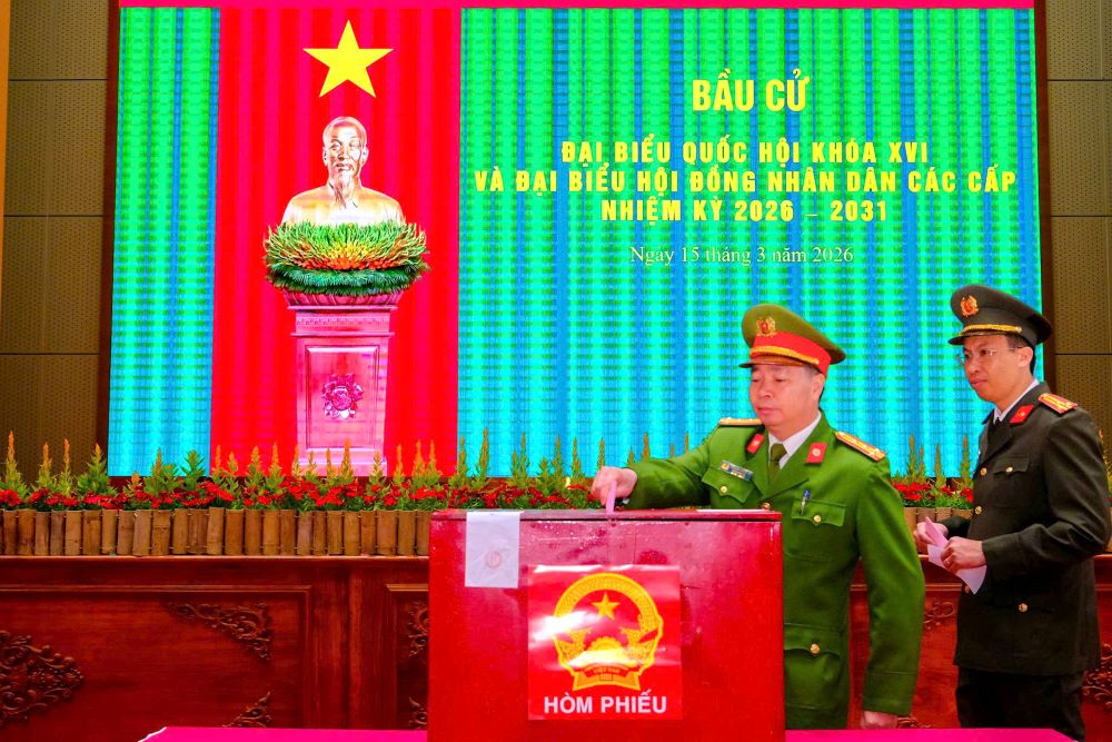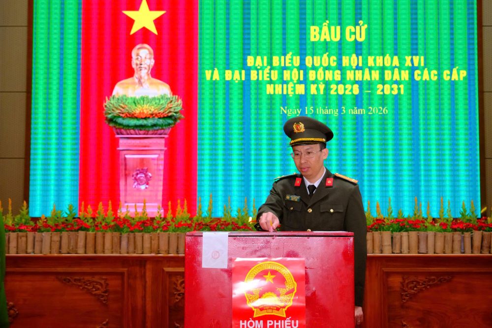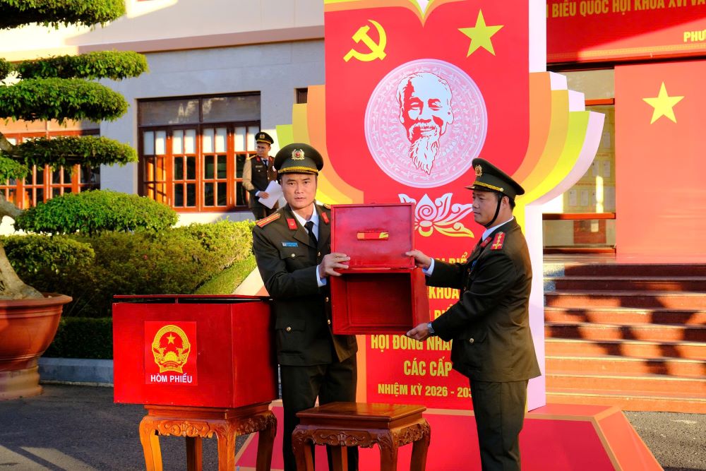 Sau lễ khai mạc, các cử tri là cán bộ, chiến sĩ Công an tỉnh đã lần lượt tham gia bỏ phiếu trong không khí nghiêm túc, phấn khởi, thể hiện rõ tinh thần trách nhiệm, ý thức chính trị và niềm tin vào ngày hội lớn của toàn dân. Việc kiểm tra, niêm phong thùng phiếu được thực hiện đúng quy định, bảo đảm chặt chẽ, công khai và minh bạch.