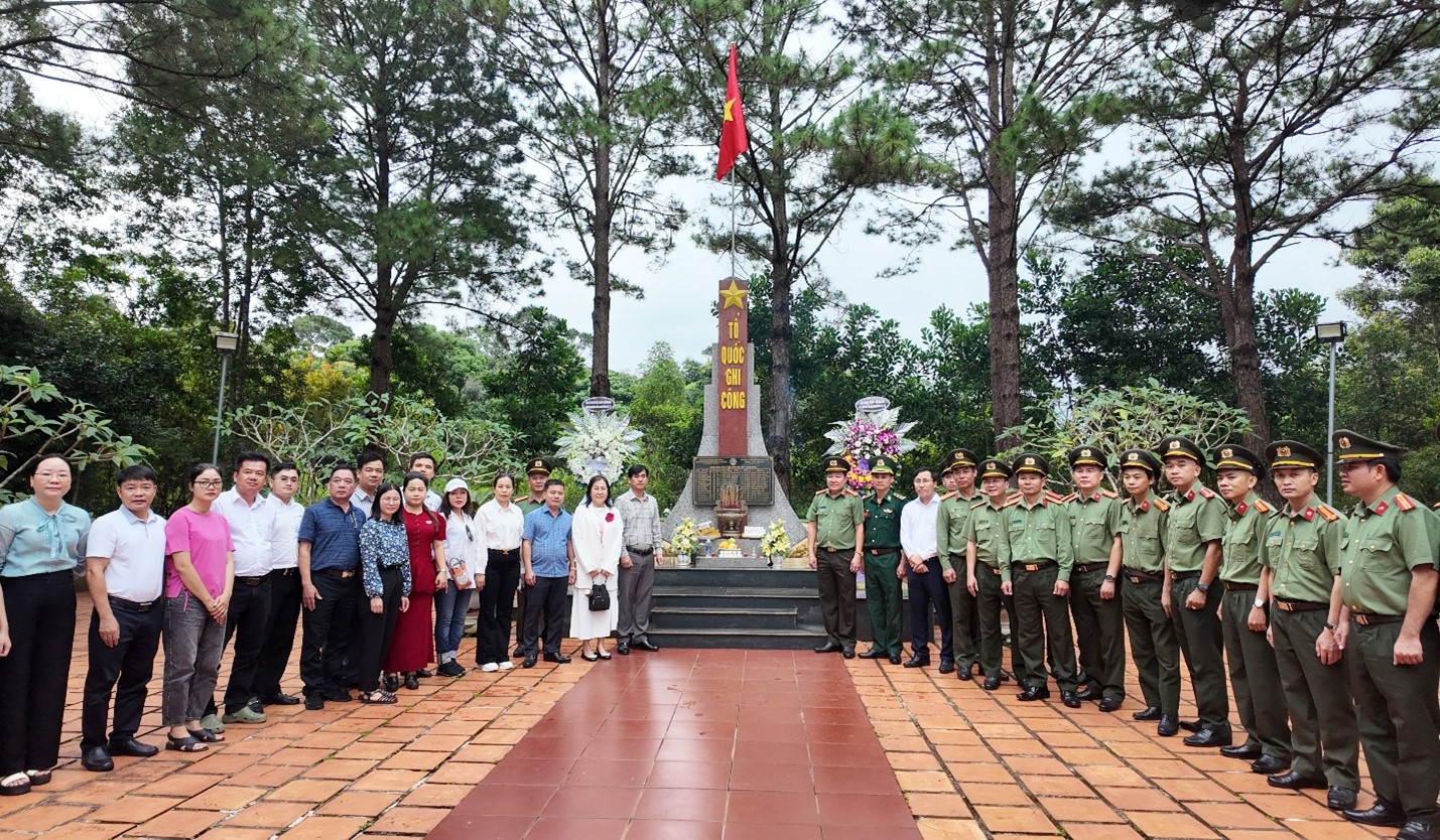 Đoàn công tác dâng hoa, dâng hương và chụp ảnh lưu niệm tại Đài tưởng niệm các Anh hùng liệt sỹ chống quân Pôn Pốt – Đồn Biên phòng cửa khẩu Bu P’Răng, xã Quảng Trực