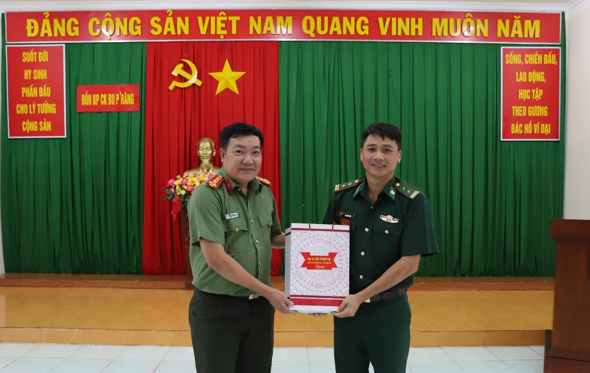 Lãnh đạo Cục Ngoại tuyến – Bộ Công an, đại diện đoàn công tác trao quà cho cán bộ, chiến sĩ Đồn Biên phòng cửa khẩu Bu P'Răng
