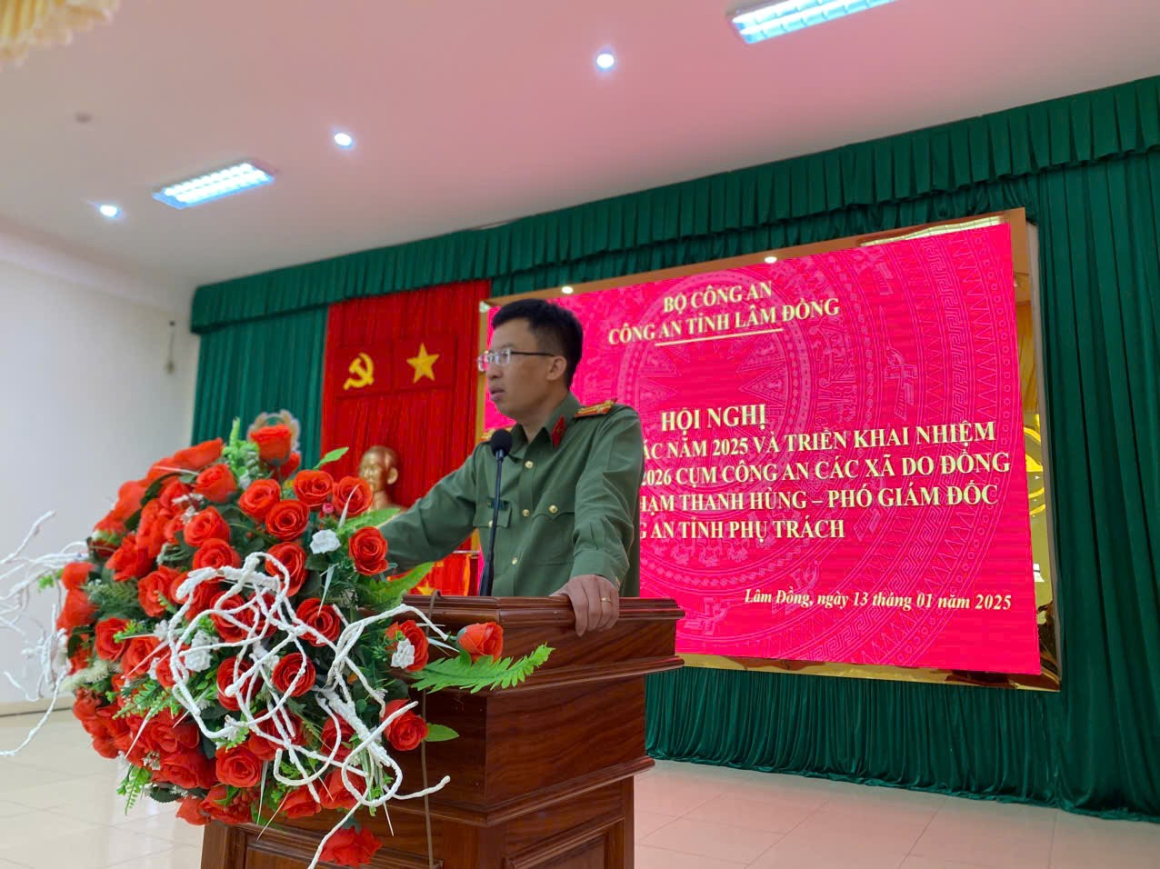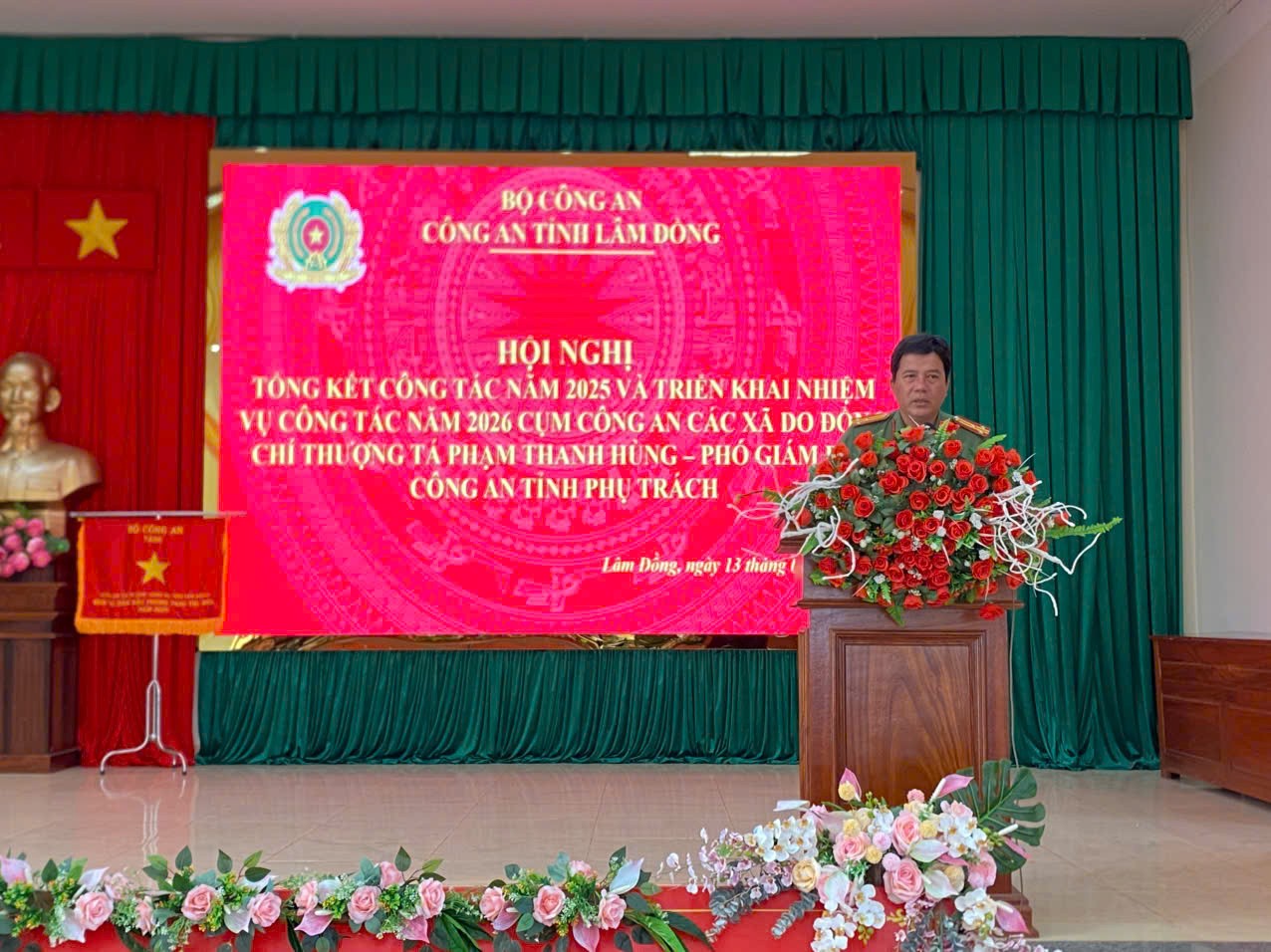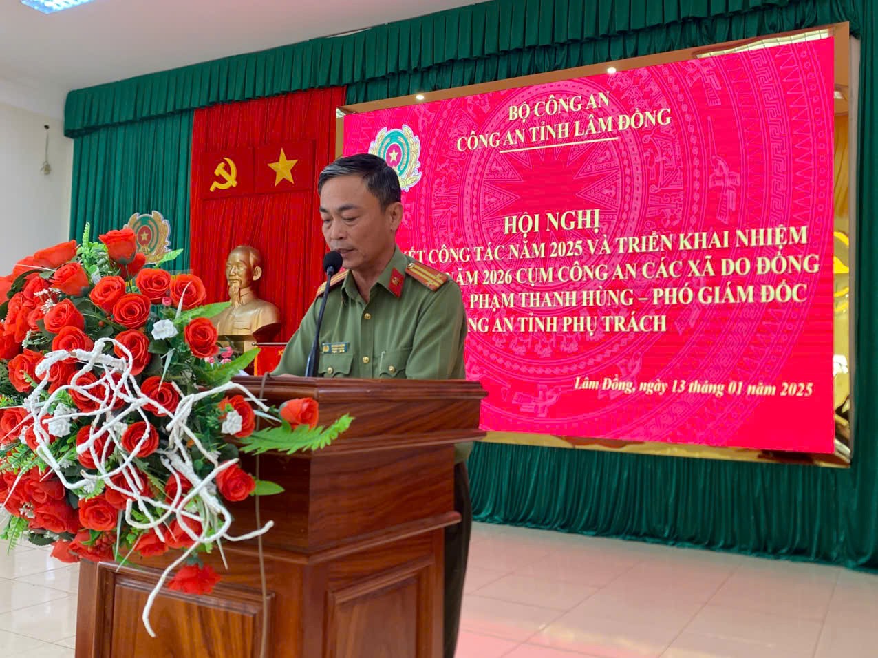 Phát biểu chỉ đạo tại Hội nghị, đồng chí Thượng tá Phạm Thanh Hùng ghi nhận, biểu dương những kết quả, thành tích mà Công an 07 xã trong Cụm đã đạt được trong năm 2025. Đồng chí yêu cầu các đơn vị tiếp tục chú trọng công tác xây dựng Đảng, xây dựng lực lượng; trọng tâm là đẩy mạnh giáo dục chính trị, tư tưởng cho cán bộ, chiến sĩ; siết chặt kỷ luật, kỷ cương, điều lệnh Công an nhân dân. Đồng thời, tăng cường nắm tình hình, nâng cao chất lượng công tác nghiệp vụ cơ bản; triển khai đồng bộ các biện pháp bảo đảm an ninh quốc gia, phòng ngừa, đấu tranh hiệu quả với các loại tội phạm và tệ nạn xã hội.
