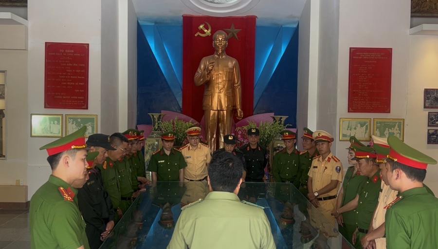 Đoàn công tác chụp hình lưu niệm tại khuôn viên Nhà truyền thống Công an 3 tỉnh Lâm Đồng, Bình Thuận (cũ) và Đắk Nông (cũ)
