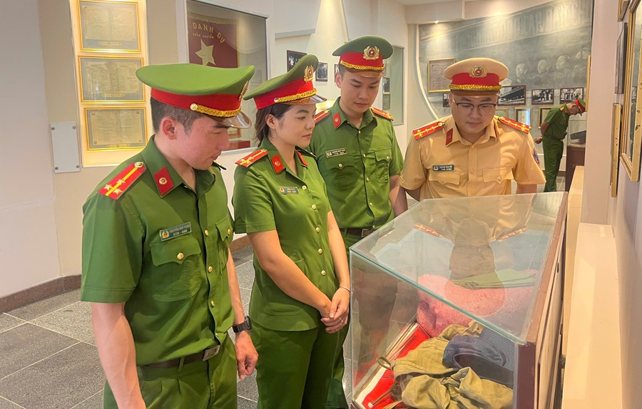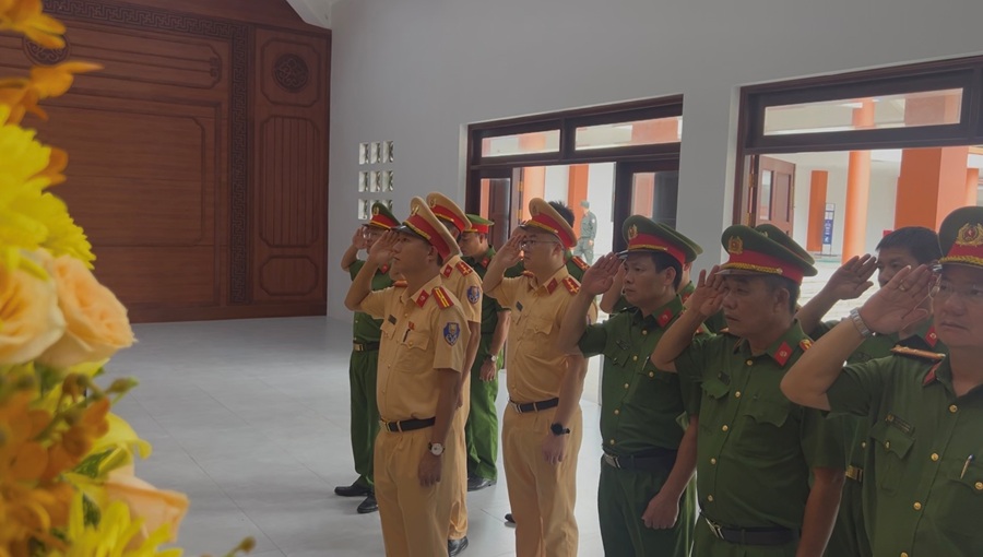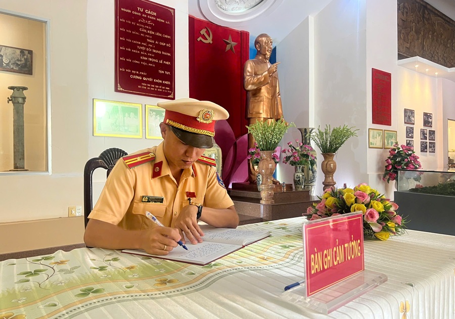 Đồng chí Thiếu tá Trương Văn Bình – Phó Trưởng Phòng Cảnh sát giao thông làm Trưởng đoàn thay mặt Cụm thi đua viết cảm tưởng tại Khu di tích lịch sử Ban An ninh Trung ương Cục miền Nam