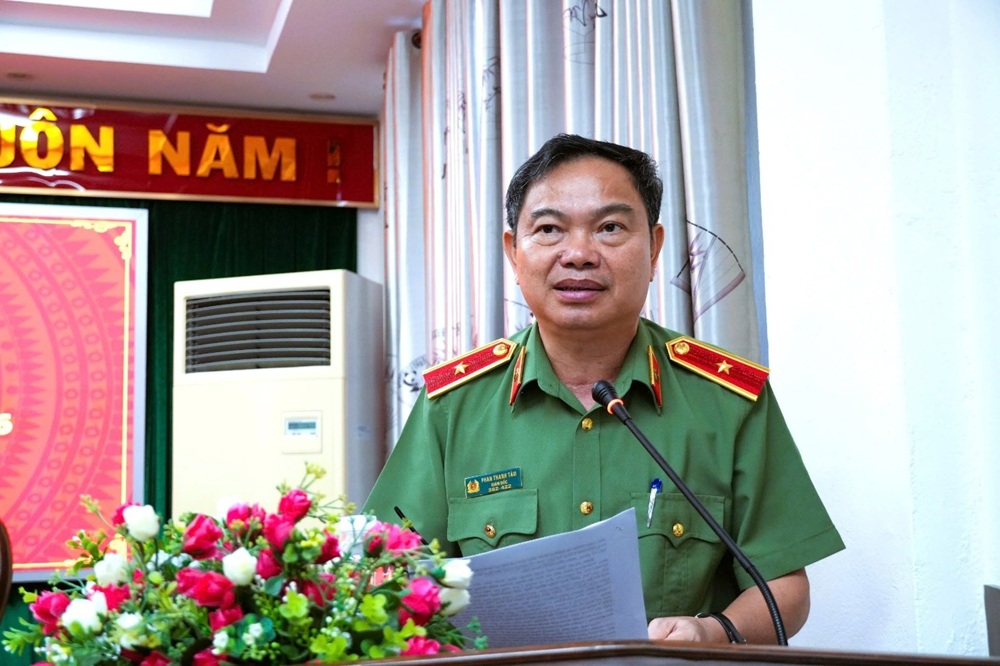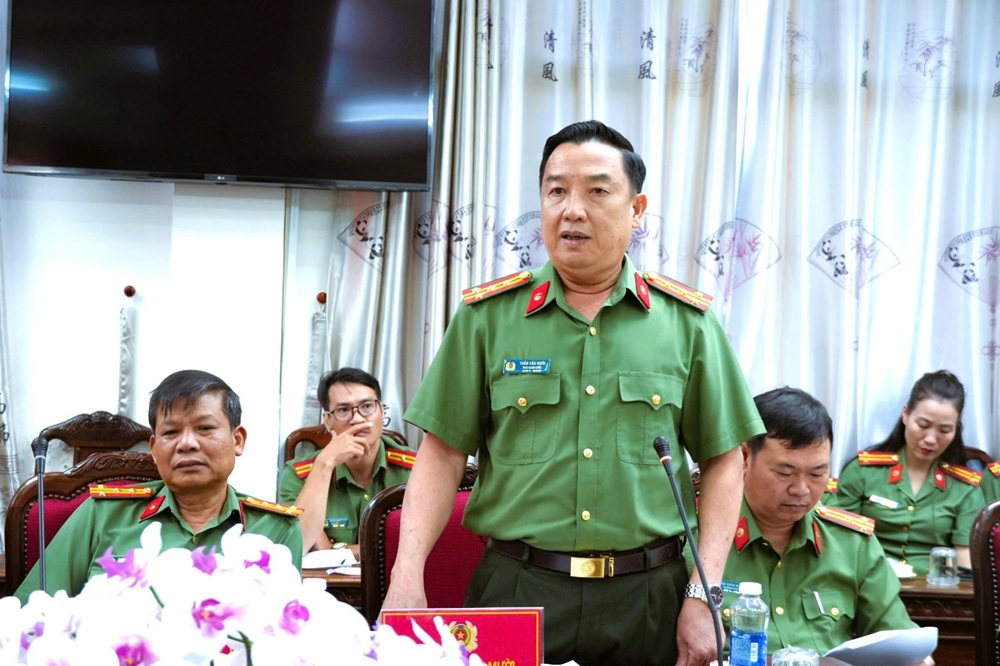 Đại tá Trần Văn Mười, Phó Giám đốc Công an tỉnh Lâm Đồng phát biểu tại Hội nghị