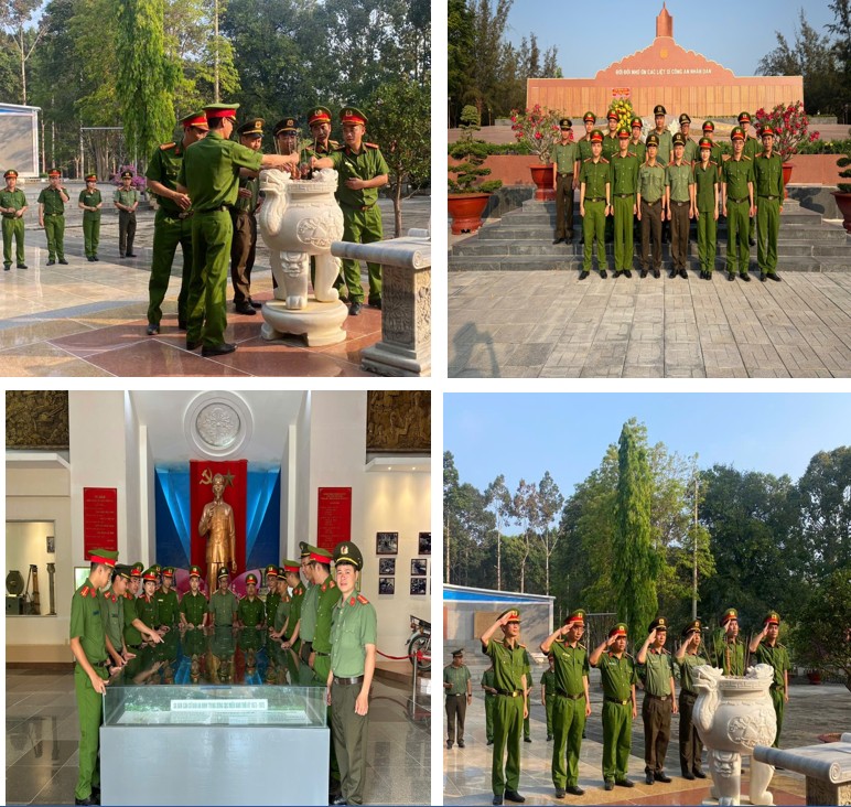 Trong không khí trang nghiêm và xúc động, đoàn công tác đã tổ chức lễ dâng hương, dâng hoa tưởng niệm các anh hùng liệt sĩ tại khu di tích. Trước anh linh các bậc tiền bối, cán bộ, chiến sĩ bày tỏ lòng biết ơn sâu sắc đối với những cống hiến, hy sinh to lớn vì độc lập, tự do của Tổ quốc; đồng thời nguyện tiếp tục phát huy truyền thống vẻ vang của lực lượng Công an nhân dân, không ngừng rèn luyện, phấn đấu hoàn thành xuất sắc nhiệm vụ được giao.