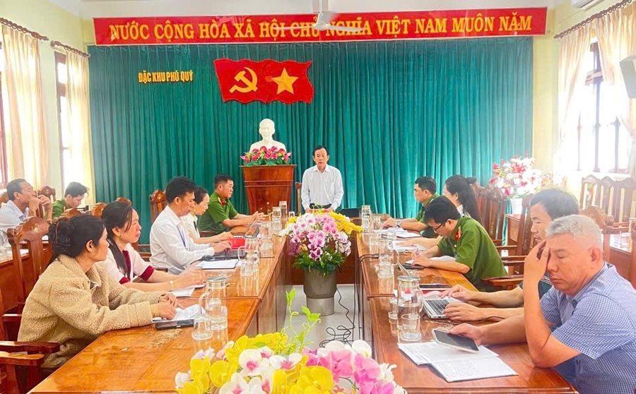 Đồng chí Lê Hồng Lợi - Chủ tịch UBND Đặc khu chủ trì buổi làm việc. Tham dự còn có đại diện các phòng, ban địa phương, Ban Chỉ huy quân sự, Trung tâm Dịch vụ tổng hợp và trưởng 10 thôn trên địa bàn. Phía Công an Đặc khu có đồng chí Thiếu tá Lê Hoàng Thiện, Phó Trưởng Công an Đặc khu. Đội chữa cháy và CNCH khu vực 11 do Thiếu tá Đoàn Đức Thanh, Đội trưởng, cùng tập thể chỉ huy và cán bộ phụ trách tham dự.