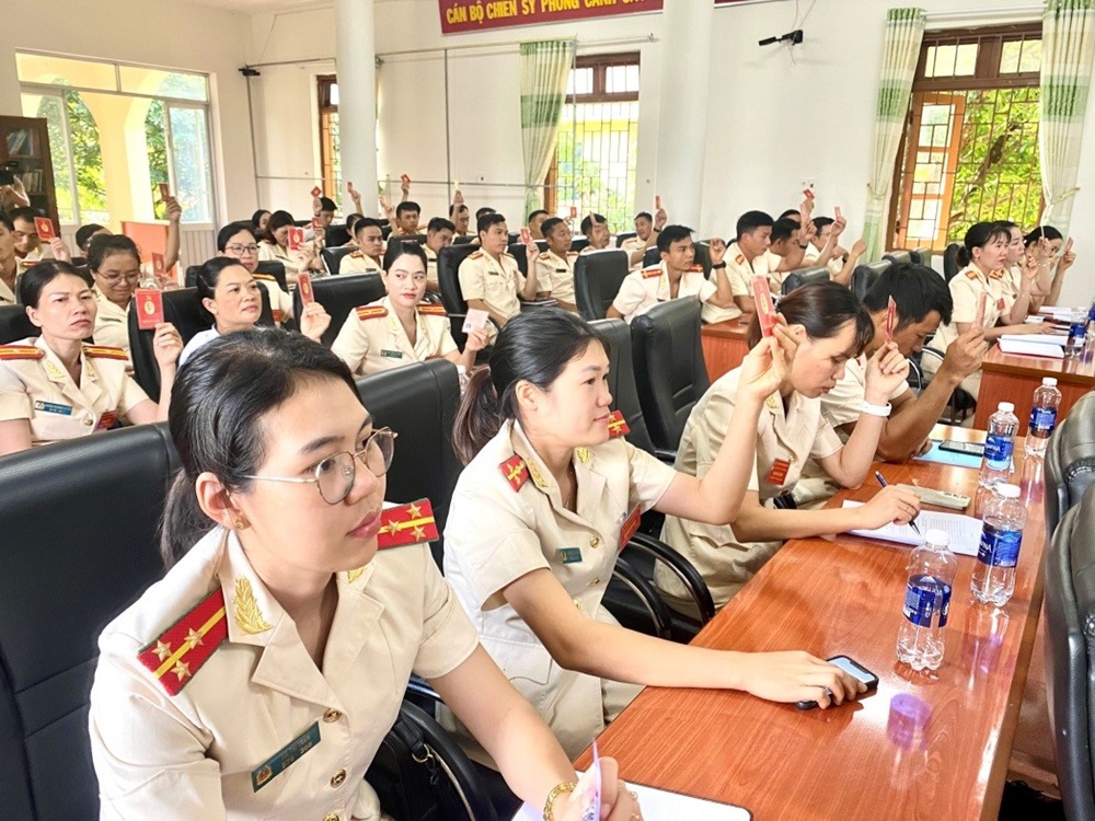 Đại hội đã biểu quyết thông qua dự thảo Nghị quyết Đại hội Chi bộ Công an phường Nam Gia Nghĩa lần thứ I, nhiệm kỳ 2025-2030.