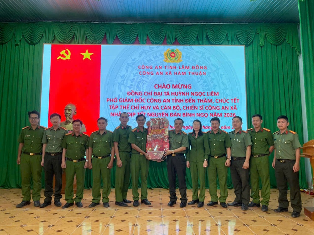 Nhân dịp năm mới, đồng chí Đại tá Huỳnh Ngọc Liêm đã thăm hỏi, động viên, chúc Tết và trao quà cho cán bộ, chiến sĩ các đơn vị; ghi nhận những nỗ lực, cố gắng của lực lượng Công an cơ sở trong điều kiện còn nhiều khó khăn; đồng thời tin tưởng toàn thể cán bộ, chiến sĩ tiếp tục đoàn kết, khắc phục khó khăn, hoàn thành tốt nhiệm vụ được giao, góp phần giữ vững ổn định an ninh, trật tự, phục vụ Nhân dân đón Tết Nguyên đán Bính Ngọ năm 2026 an toàn, bình yên, lành mạnh.