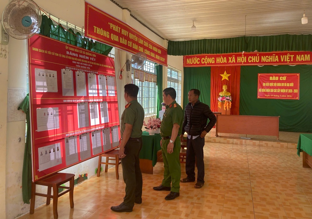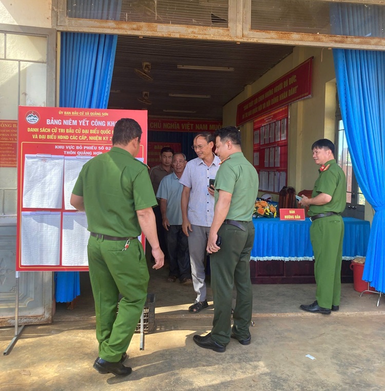Qua kiểm tra thực tế, Đại tá Nay Gia Phú ghi nhận, biểu dương tinh thần chủ động, trách nhiệm của lực lượng Công an xã Quảng Sơn trong việc tham mưu cấp ủy, chính quyền địa phương triển khai đồng bộ các biện pháp bảo đảm an ninh chính trị, trật tự an toàn xã hội; chủ động xây dựng phương án bảo vệ, phân công cán bộ trực 24/24 giờ tại các điểm bầu cử; tăng cường tuần tra, kiểm soát, kịp thời phát hiện và ngăn chặn các hành vi vi phạm pháp luật.