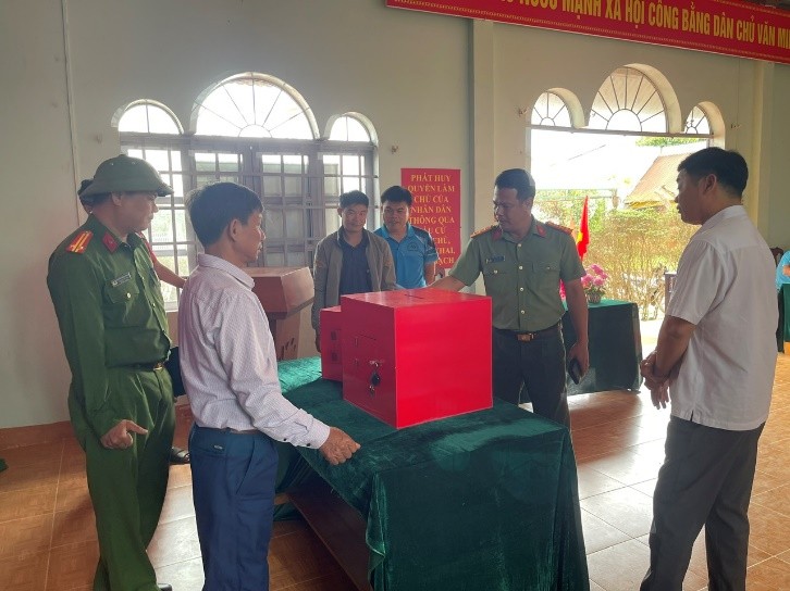 Công an xã Quảng Phú tăng cường nắm tình hình, bảo đảm an toàn các khu vực bỏ phiếu