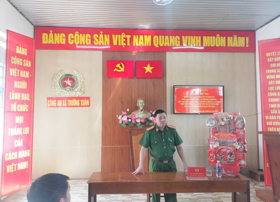 Tại Công an xã Trường Xuân, đồng chí Đại tá Nguyễn Tường Vũ cũng đã ân cần thăm hỏi tình hình công tác, đời sống, sinh hoạt của cán bộ, chiến sĩ. Đồng chí đánh giá cao vai trò của lực lượng Công an xã trong việc chủ động nắm chắc tình hình địa bàn, tham mưu kịp thời cho cấp ủy, chính quyền địa phương triển khai các biện pháp bảo đảm an ninh trật tự, góp phần giữ vững ổn định, phục vụ phát triển kinh tế – xã hội.