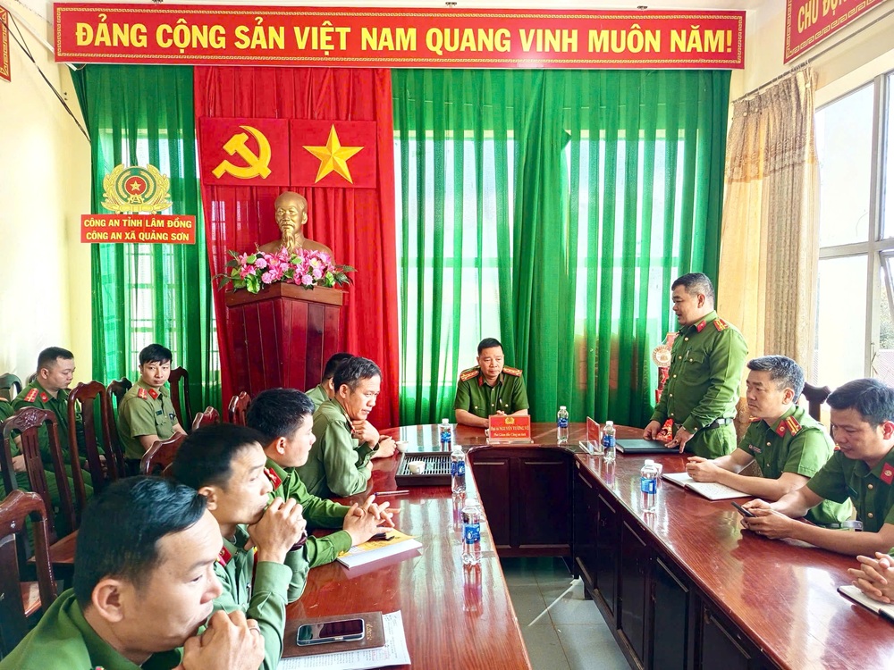 Tại Công an xã Quảng Sơn, đồng chí Phó Giám đốc đã nghe báo cáo tình hình, kết quả công tác bảo đảm an ninh trật tự trong năm 2025 và giai đoạn cao điểm Tết Nguyên đán. Đồng chí ghi nhận, biểu dương tinh thần trách nhiệm, sự cố gắng, nỗ lực của tập thể chỉ huy, cán bộ, chiến sĩ Công an xã Quảng Sơn trong công tác giữ gìn an ninh chính trị, trật tự an toàn xã hội, góp phần phục vụ hiệu quả nhiệm vụ phát triển kinh tế – xã hội tại địa phương.