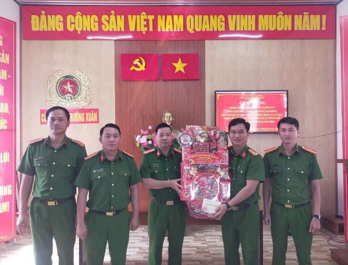 Đại tá Nguyễn Tường Vũ – Ủy viên Ban Thường vụ Đảng ủy, Phó Giám đốc Công an tỉnh tặng quà cho cán bộ chiến sĩ Công an xãTrường Xuân