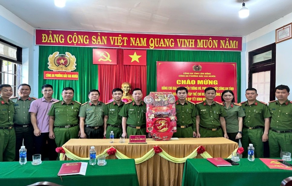Đại tá Nguyễn Tường Vũ chúc tết và giao nhiệm vụ cho Công an phường Bắc Gia Nghĩa trong dịp Tết Nguyên đán