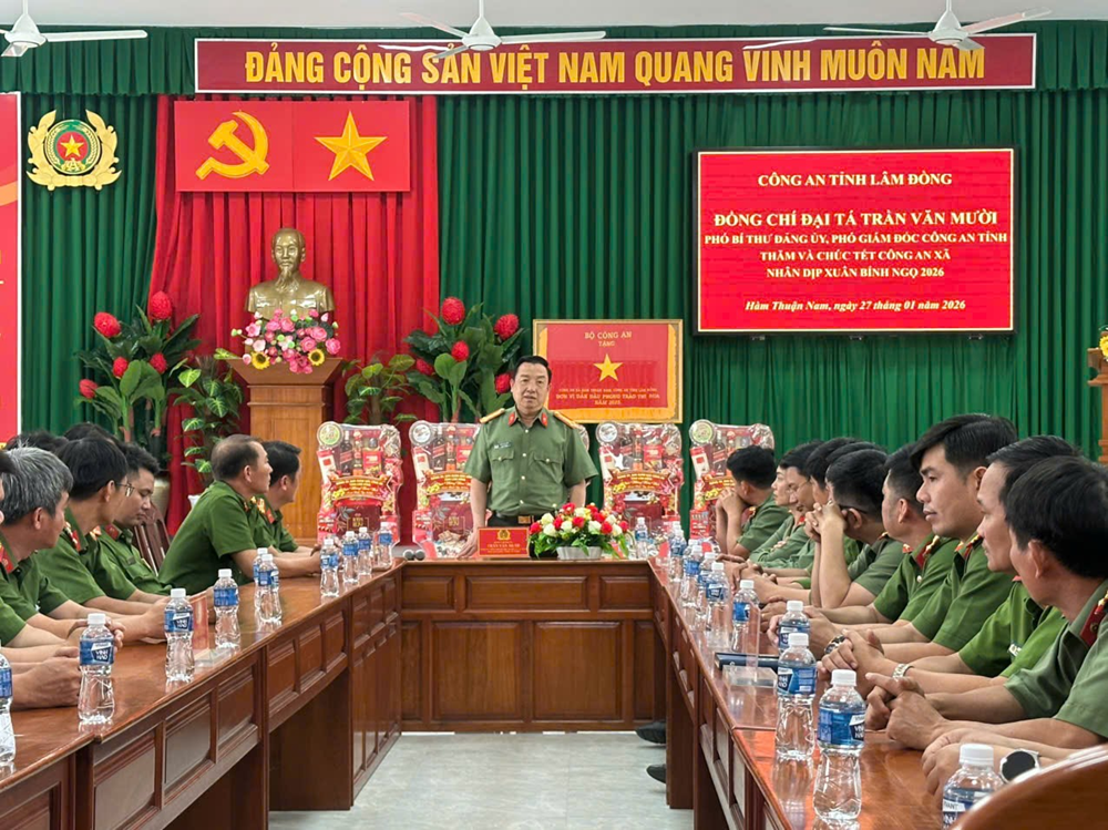 Nhân dịp này, đồng chí Đại tá Trần Văn Mười và Đoàn công tác đã thăm hỏi, chúc Tết, động viên cán bộ, chiến sĩ tại các đơn vị; ghi nhận những nỗ lực, cố gắng của lực lượng Công an cơ sở trong điều kiện còn nhiều khó khăn, đồng thời mong muốn toàn thể cán bộ, chiến sĩ tiếp tục đoàn kết, khắc phục khó khăn, hoàn thành tốt nhiệm vụ được giao, góp phần bảo đảm cho Nhân dân đón Tết vui tươi, an toàn và bình yên.