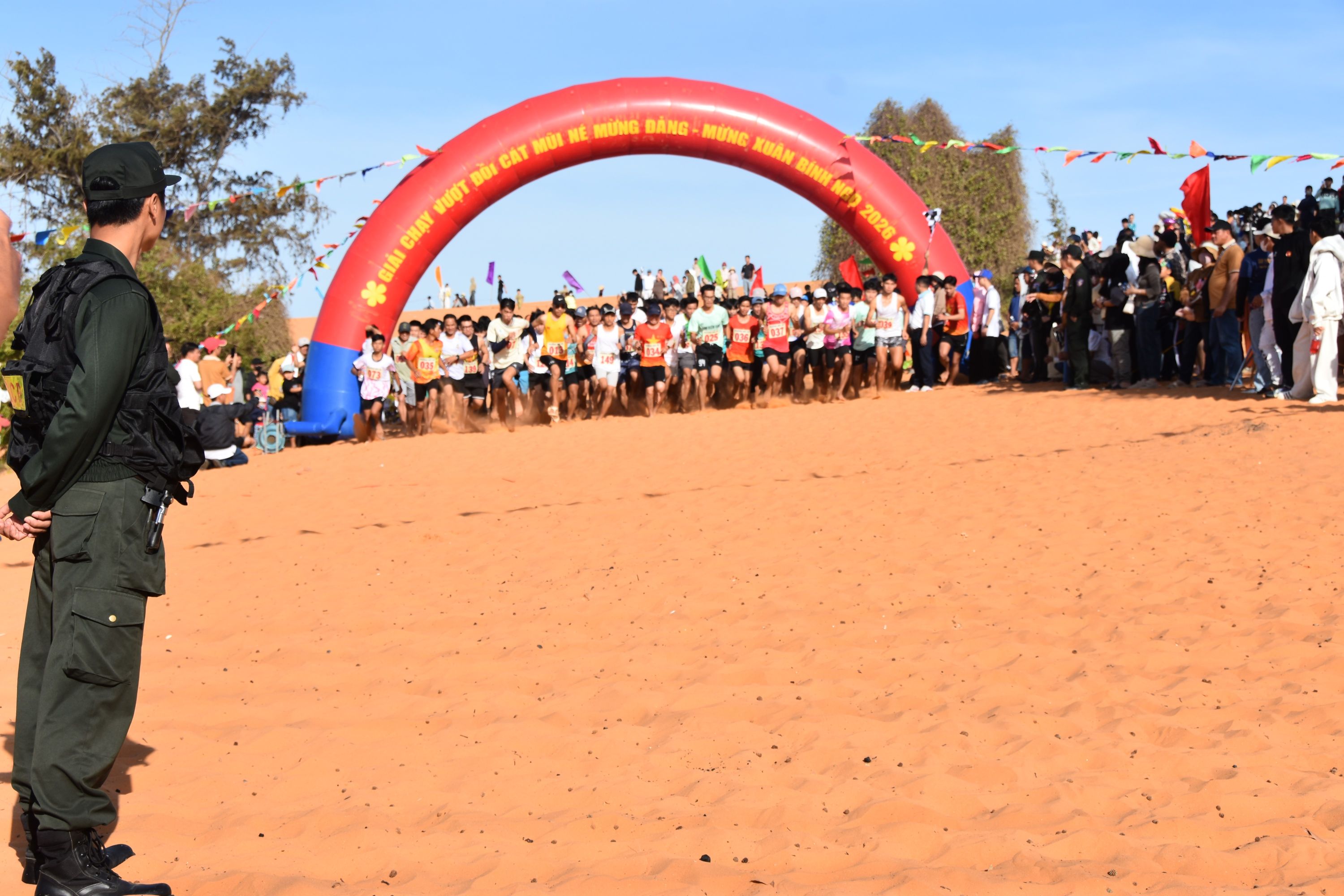 Đây là hoạt động thông tin tuyên truyền, văn hóa nghệ thuật, thể dục thể thao chào năm mới. Trước thời điểm diễn ra giải, Công an phường đã chủ động xây dựng phương án, phối hợp với lực lượng cảnh sát cơ động, lực lượng cảnh sát giao thông, biên phòng, quân sự Mũi Né và lực lượng an ninh cơ sở; các lực lượng phối hợp phân công cán bộ, chiến sĩ bám sát địa bàn; tổ chức phân luồng, điều tiết giao thông, giữ gìn trật tự tại khu vực xuất phát, về đích và dọc tuyến đường chạy trên đồi cát.