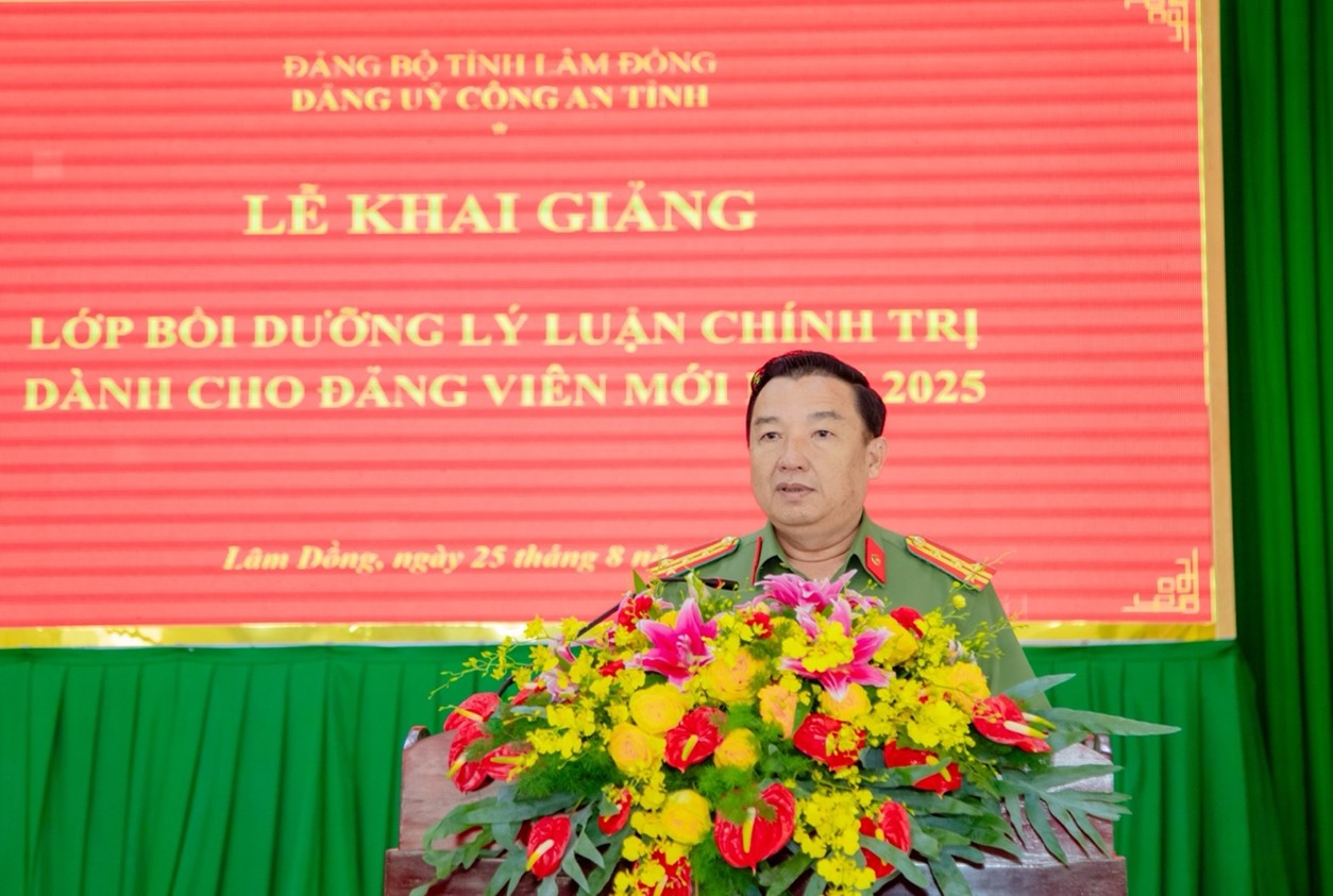 Tin tức - Sự kiệnHoạt động của Công an tỉnh Đảng ủy Công an tỉnh Lâm Đồng khai giảng lớp bồi dưỡng lý luận chính trị dành cho đảng viên mới năm học 2024-2025 Your browser does not support the audio element.   26/08/2025 14:22 |   626 |  Sáng ngày 25/8/2025, Đảng uỷ Công an tỉnh khai giảng Lớp bồi dưỡng lý luận chính trị dành cho đảng viên mới. Đến dự và chỉ đạo Lễ khai giảng có đồng chí Đại tá Trần Văn Mười - Phó bí thư Đảng uỷ, Phó Giám đốc Công an tỉnh và 42 Đảng viên mới. Quang cảnh lễ khai giảng Các đồng chí đảng viên dự bị của các tổ chức cơ sở Đảng trực thuộc Đảng bộ Công an tỉnh sẽ được học tập các chuyên đề về: Chủ nghĩa Mác – Lê Nin và tư tưởng Hồ Chí Minh – nền tảng tư tưởng, kim chỉ nam cho hành động của Đảng và cách mạng Việt nam; Độc lập dân tộc gắn liền với Chủ nghĩa xã hội và con đường đi lên Chủ nghĩa xã hội ở Việt Nam;… Đại tá Trần Văn Mười - Phó bí thư Đảng uỷ, Phó Giám đốc Công an tỉnh dự và chỉ đạo. Phát biểu tại buổi lễ, đồng chí Đại tá Trần Văn Mười - Phó bí thư Đảng uỷ, Phó Giám đốc Công an tỉnh đã biểu dương tinh thần, trách nhiệm của Ban Tổ chức trong công tác tham mưu, chuẩn bị các điều kiện để tổ chức lớp học. Để cuộc cách mạng tạo nền tảng vững chắc đưa đất nước bước vào kỷ nguyên phát triển, yêu cầu mỗi đảng viên, đặc biệt là đảng viên trẻ phải không ngừng nổ lực phấn đấu, rèn luyện tu dưỡng, nâng cao năng lực tự học, tự nghiên cứu để hoàn thành tốt nhiệm vụ được giao. Đồng thời xem việc học tập lý luận chính trị là việc làm thường xuyên thì mới nhận thức rõ và có tư duy đổi mới sáng tạo, cần phát huy những kiến thức đã học được vào thực tiễn công tác cũng như học tập. Thực hiện: Minh Tuấn