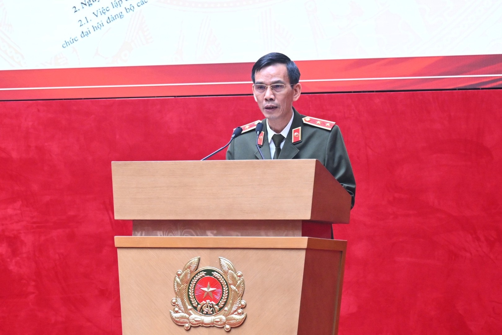 Thiếu tướng Nguyễn Quốc Toản, Chánh Văn phòng Bộ Công an, Chánh Văn phòng Đảng ủy CATW trình bày tóm tắt báo cáo tổng kết công tác Đảng năm 2025; phương hướng, nhiệm vụ công tác năm 2026.