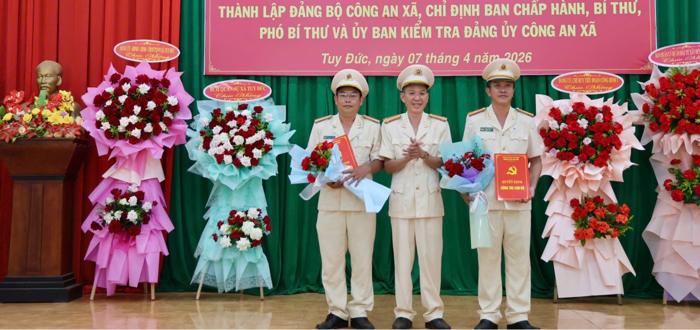 Trong quý I năm 2026, Chi bộ Công an xã Tuy Đức đã phát huy tinh thần đoàn kết, chủ động triển khai hiệu quả các mặt công tác. Lực lượng Công an bảo đảm an ninh, an toàn các sự kiện chính trị quan trọng; thực hiện tốt công tác chuẩn bị bầu cử đại biểu Quốc hội khóa XVI và HĐND các cấp nhiệm kỳ 2026–2031. Công tác đấu tranh phòng, chống tội phạm đạt nhiều kết quả; quản lý hành chính được tăng cường; công tác phòng cháy, chữa cháy, bảo đảm trật tự an toàn giao thông được duy trì; phong trào toàn dân bảo vệ an ninh Tổ quốc tiếp tục được củng cố.