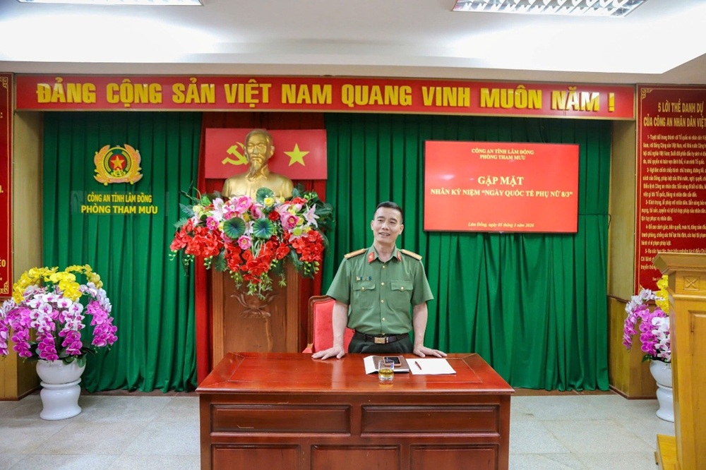 Thượng tá Đỗ Minh Đức - Ủy viên Ban Thường vụ Đảng ủy Công an tỉnh, Bí thư Đảng ủy cơ sở, Trưởng phòng Tham mưu gửi đến toàn thể cán bộ, hội viên phụ nữ đơn vị những lời chúc mừng tốt đẹp nhất nhân Ngày Quốc tế Phụ nữ 8/3