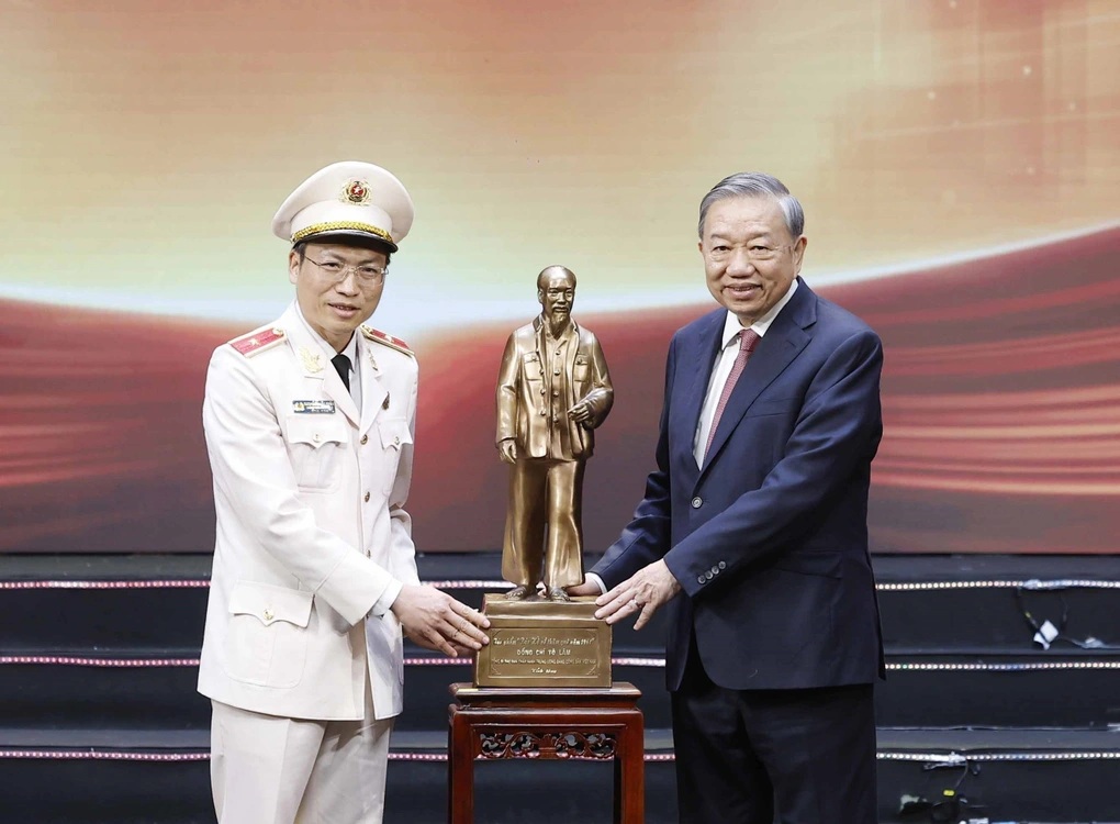 Tổng Bí thư, Chủ tịch nước Tô Lâm tặng lực lượng Tham mưu Công an nhân dân bức tượng Bác Hồ về thăm quê năm 1961.