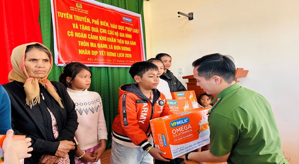 Nhằm phát huy tinh thần “tương thân, tương ái”, thắt chặt tình đoàn kết quân - dân, lan tỏa hình ảnh người chiến sĩ Công an nhân dân bản lĩnh, nhân văn, vì nhân dân phục vụ, Công an xã Đơn Dương đã phối hợp cùng Công ty Cổ phần VP Milk trao tặng 50 phần quà cho học sinh và hộ gia đình khó khăn tại thôn Ma Đanh, tổng trị giá 40 triệu đồng. Những phần quà trao tận tay người dân không chỉ thể hiện truyền thống “lá lành đùm lá rách”, mà còn khẳng định vai trò đồng hành của lực lượng công an trong công tác an sinh xã hội tại địa phương.