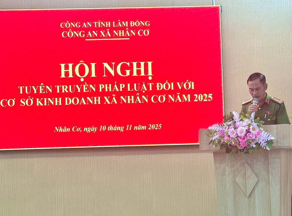 Phát biểu chỉ đạo, ông Đoàn Ngọc Vinh – Phó Bí thư Thường trực Đảng ủy xã Nhân Cơ ghi nhận và biểu dương tinh thần chủ động, trách nhiệm của lực lượng Công an xã trong công tác tuyên truyền, phổ biến pháp luật. Ông nhấn mạnh, trong bối cảnh phát triển nhanh của địa phương, việc nâng cao ý thức chấp hành pháp luật của các hộ và doanh nghiệp là yếu tố quan trọng để đảm bảo ổn định an ninh, trật tự, tạo môi trường thuận lợi cho kinh tế - xã hội phát triển bền vững.