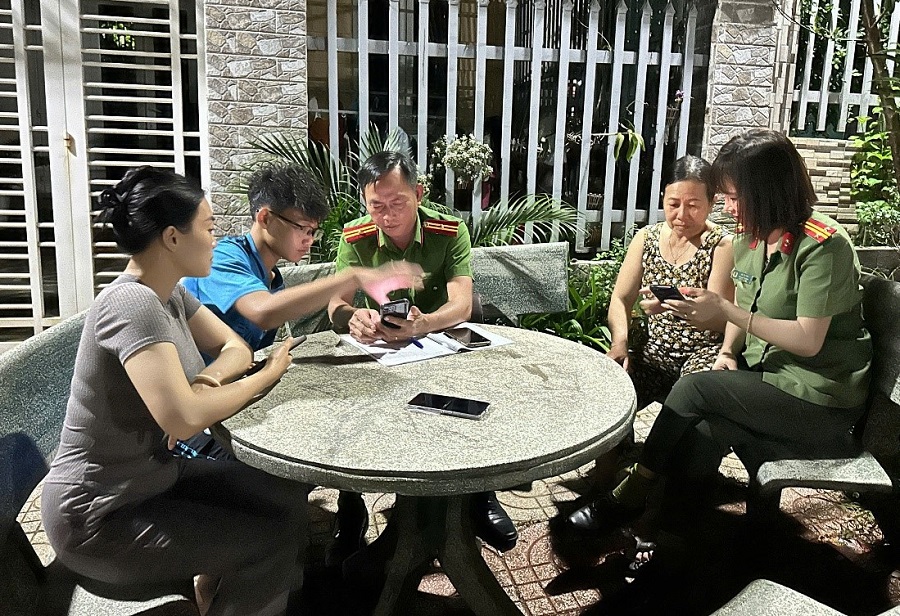 Cán bộ, chiến sĩ Công an phường “đi từng ngõ, gõ từng nhà” tuyên truyền, hướng dẫn người dân cài đặt ứng dụng Báo cháy 114