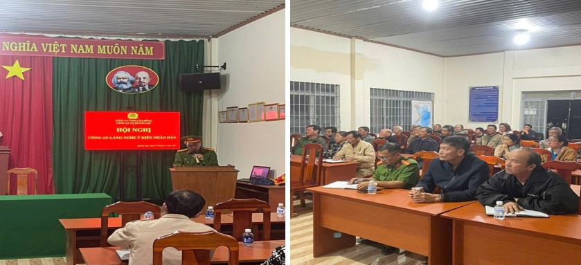 Hình ảnh người dân phát biểu và lực lượng Công an lắng nghe ý kiến