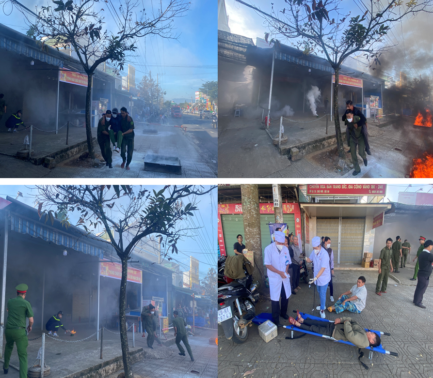 Tình huống giả định được xây dựng sát với thực tế: vào lúc 09h00 sáng, đám cháy bùng phát tại một gian hàng thương mại giữa chợ, nghi do chập hệ thống điện. Khu vực này tập trung nhiều vật liệu dễ cháy như vải vóc, đồ gia dụng nên ngọn lửa lan nhanh, tạo thành cột khói đen dày đặc. Hiện trường trở nên hỗn loạn khi tiểu thương và người dân hoảng loạn tháo chạy, một số người bị mắc kẹt trong khu vực nguy hiểm.