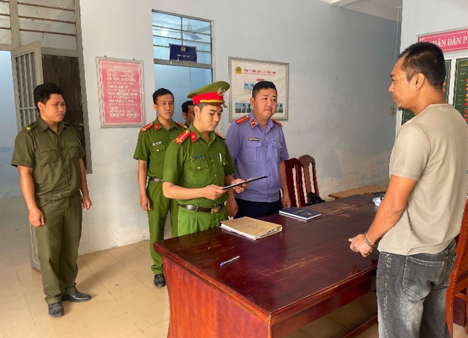 Cơ quan Cảnh sát điều tra Công an tỉnh Lâm Đồng đọc lệnh bắt bị can Trần Quốc Tuấn để tạm giam
