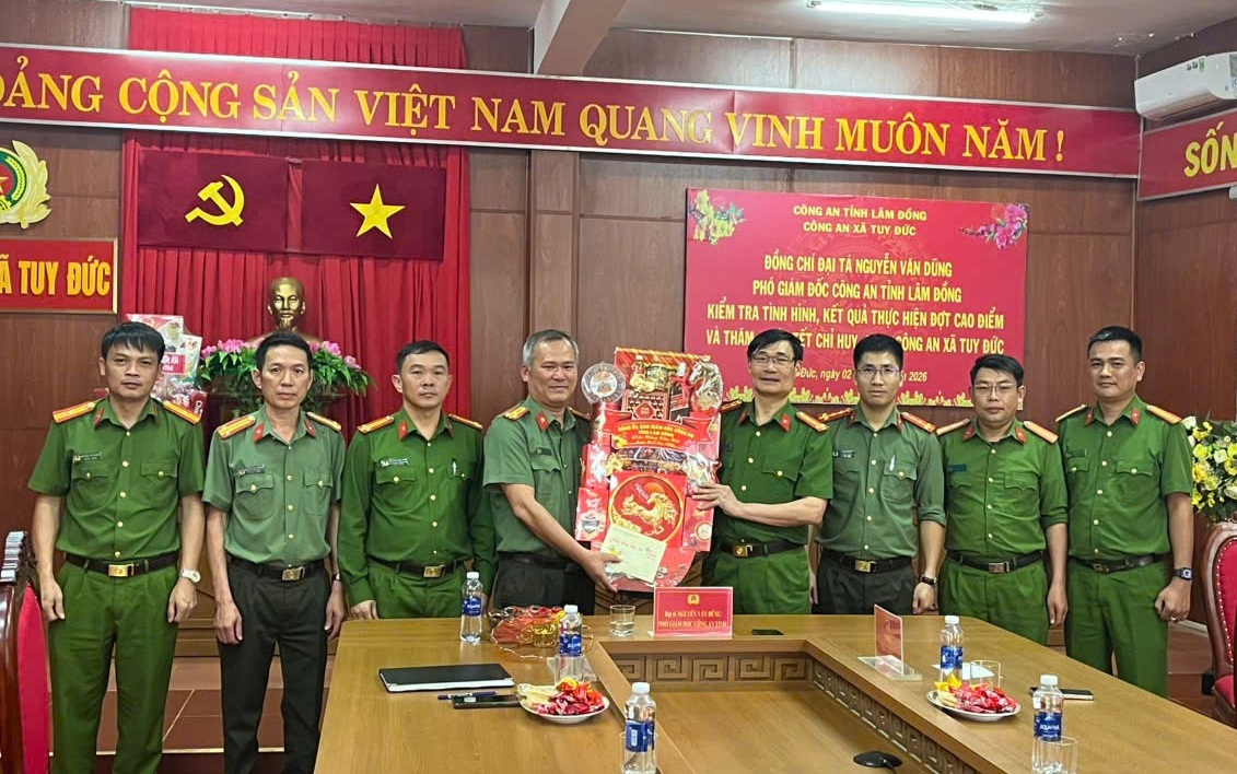 Tại buổi làm việc, đồng chí Phó Giám đốc Công an tỉnh đã nghe Chỉ huy Công an xã Tuy Đức báo cáo nhanh về tình hình an ninh, trật tự trên địa bàn, kết quả triển khai các kế hoạch cao điểm tấn công, trấn áp tội phạm, bảo đảm trật tự an toàn xã hội trước, trong và sau Tết Nguyên đán. Mặc dù địa bàn rộng, điều kiện còn nhiều khó khăn, song cán bộ, chiến sĩ Công an xã Tuy Đức luôn nêu cao tinh thần trách nhiệm, bám sát cơ sở, chủ động nắm chắc tình hình, kịp thời tham mưu cấp ủy, chính quyền địa phương giải quyết hiệu quả các vấn đề phát sinh, không để xảy ra vụ việc phức tạp.