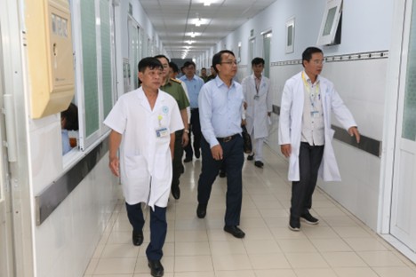 Đồng chí Đặng Hồng Sỹ kiểm tra cơ sở vật chất của Bệnh viện Đa khoa Bình Thuận.