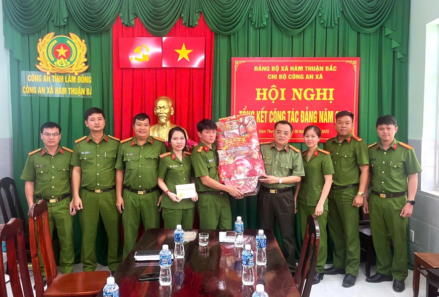 Cũng trong dịp này, đồng chí Phó Giám đốc đã gửi lời thăm hỏi, động viên và tặng quà cho tập thể cán bộ, chiến sĩ Công an xã Hàm Thuận Bắc, chúc lực lượng Công an xã hoàn thành tốt nhiệm vụ, đảm bảo bình yên cho Nhân dân vui Tết, đón Xuân.
