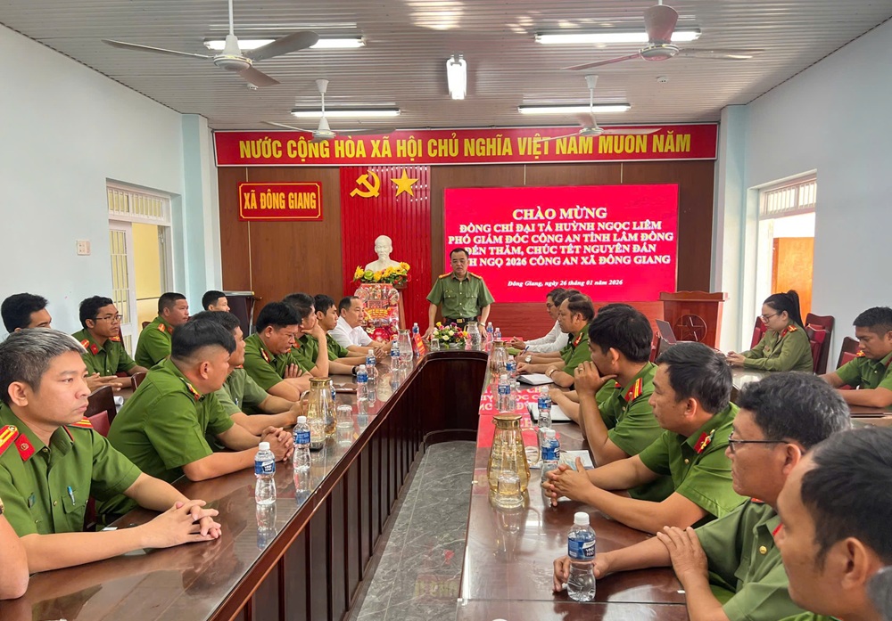 Cũng trong sáng ngày 26/01/2026, tại xã Đông Giang, đồng chí Phó Giám đốc đánh giá cao tinh thần đoàn kết, khắc phục khó khăn của lực lượng Công an xã trong công tác nắm tình hình, giữ gìn ANTT tại cơ sở. Đồng chí yêu cầu Công an xã Đông Giang tiếp tục triển khai nghiêm túc các phương án bảo đảm ANTT trong dịp Tết, chủ động phòng ngừa, đấu tranh hiệu quả với các loại tội phạm, đảm bảo cho Nhân dân đón Xuân an toàn, lành mạnh. Đồng thời chỉ đạo đơn vị chuẩn bị tốt các điều kiện phục vụ cuộc bầu cử Đại biểu Quốc hội khóa XVI và HĐND các cấp, nhiệm kỳ 2026–2031.