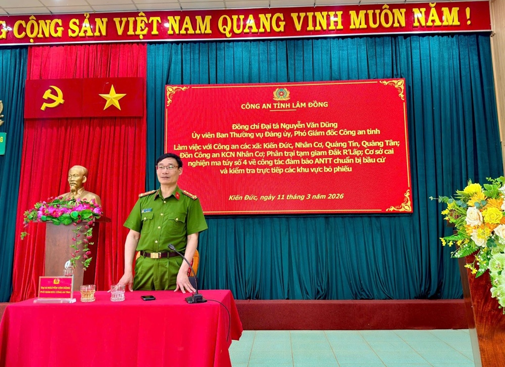 Theo đó, Đoàn công tác đã tiến hành kiểm tra tại các xã Kiến Đức, Nhân Cơ, Quảng Tín, Quảng Tân, Quảng Trực cùng một số đơn vị như Đồn Công an Khu công nghiệp Nhân Cơ, Cơ sở cai nghiện ma túy số 4 và Phân trại tạm giam Đắk R'Lấp, tập trung đánh giá việc triển khai các phương án bảo đảm ANTT phục vụ công tác bầu cử.