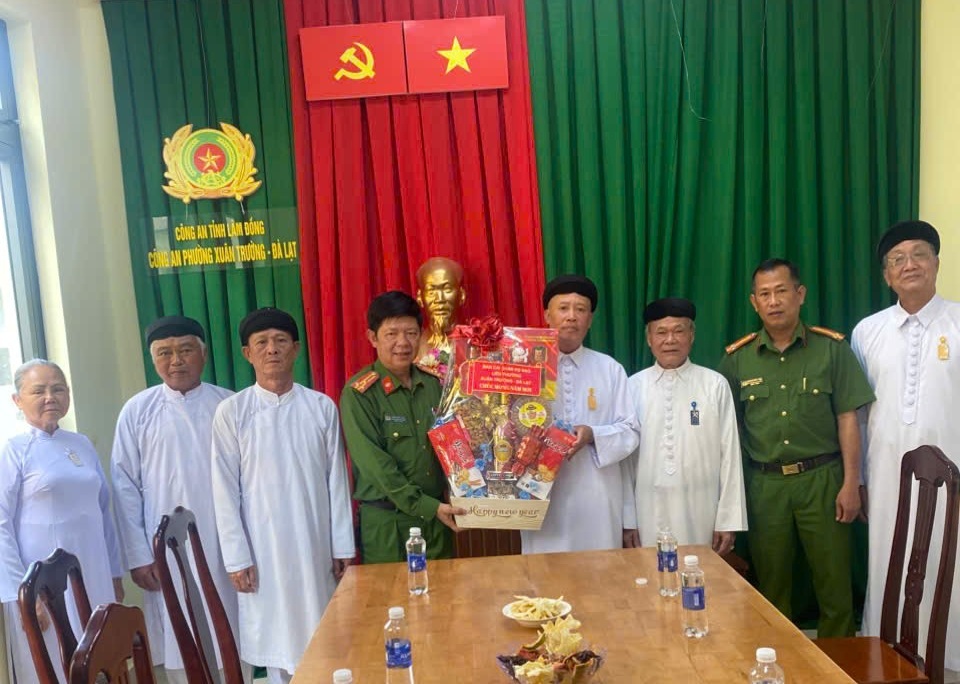 Đoàn đại diện Họ đạo Cao Đài liên phường Xuân Trường - Đà Lạt thăm, chúc Tết Công an phường