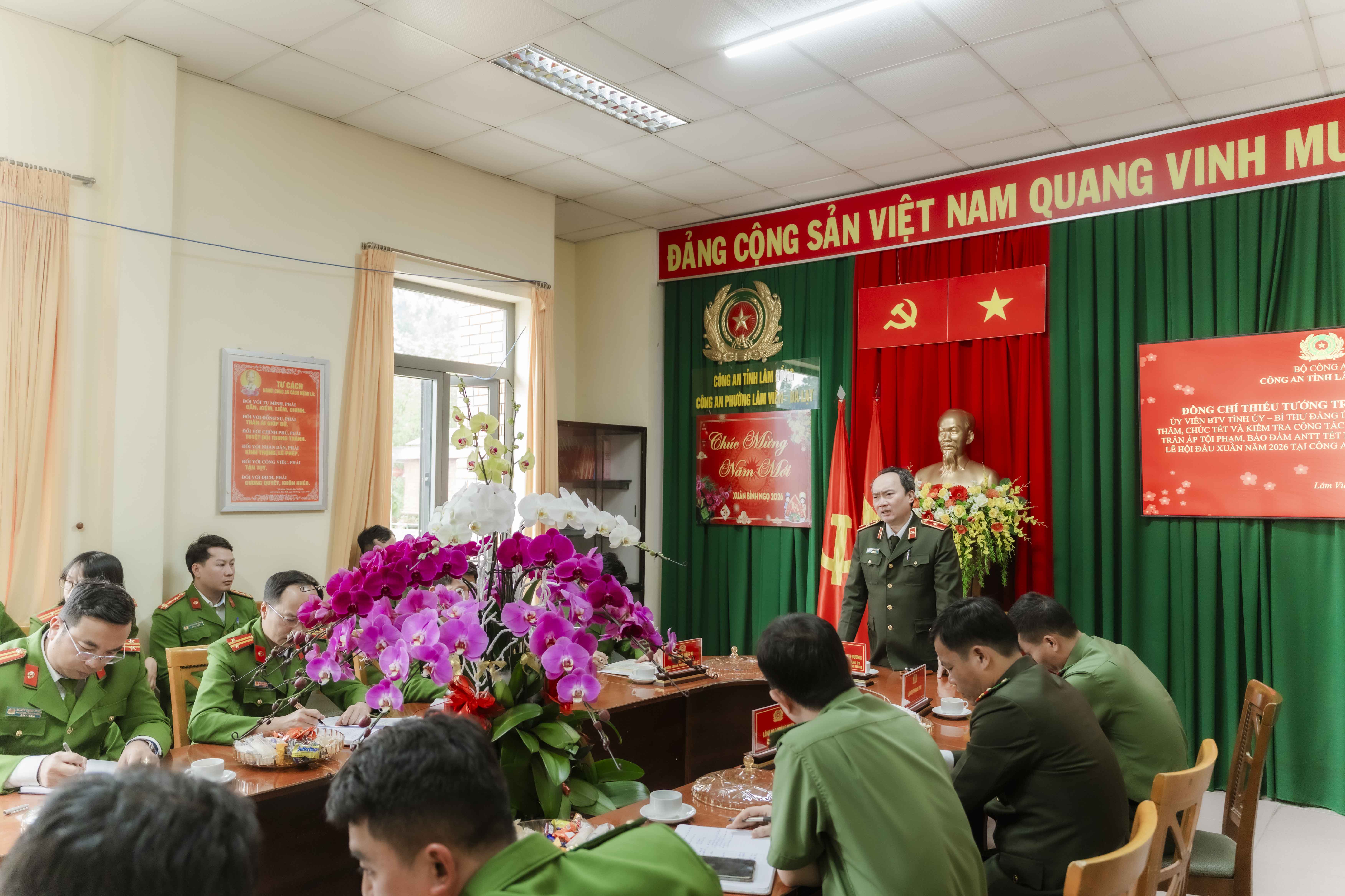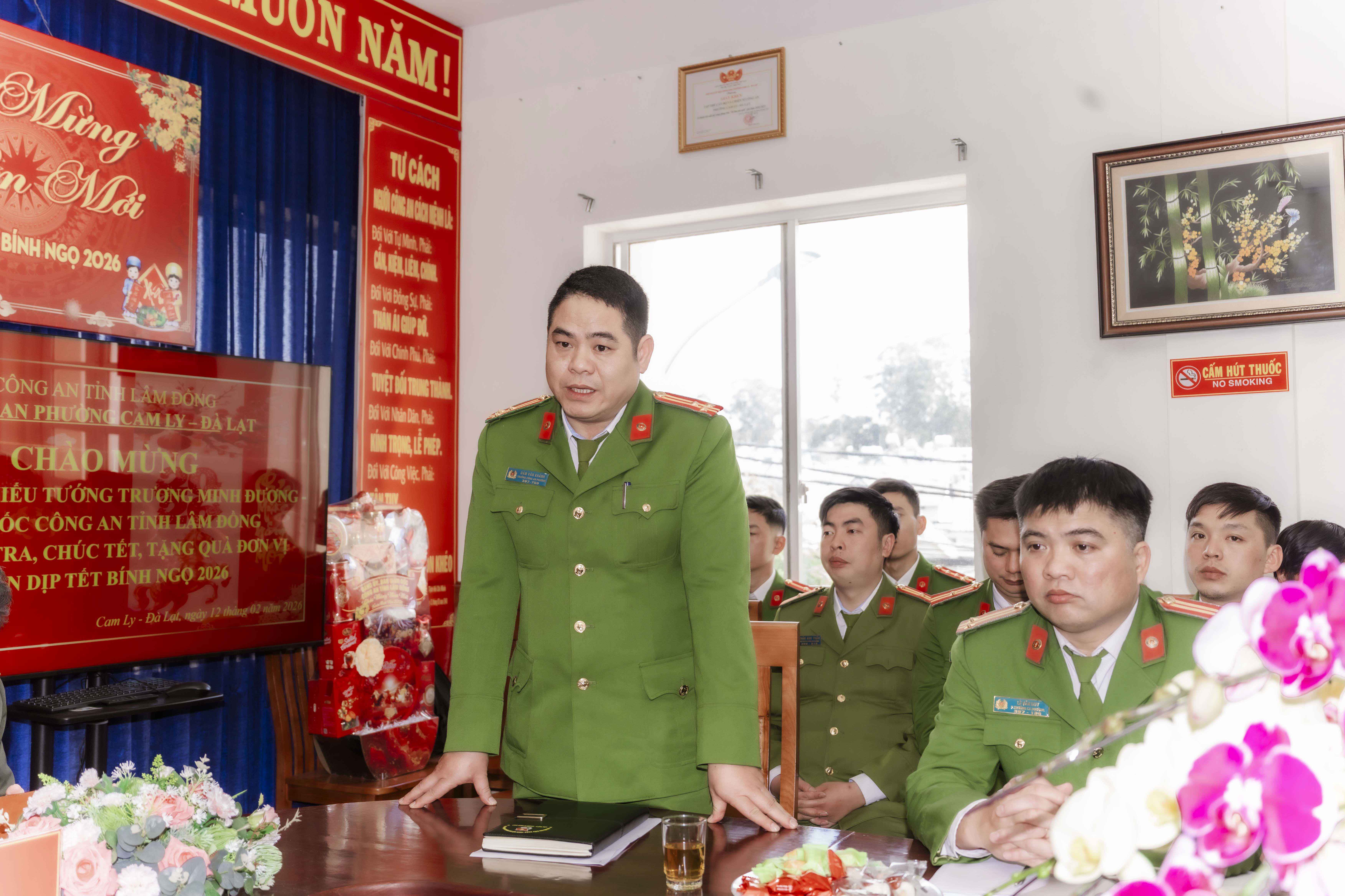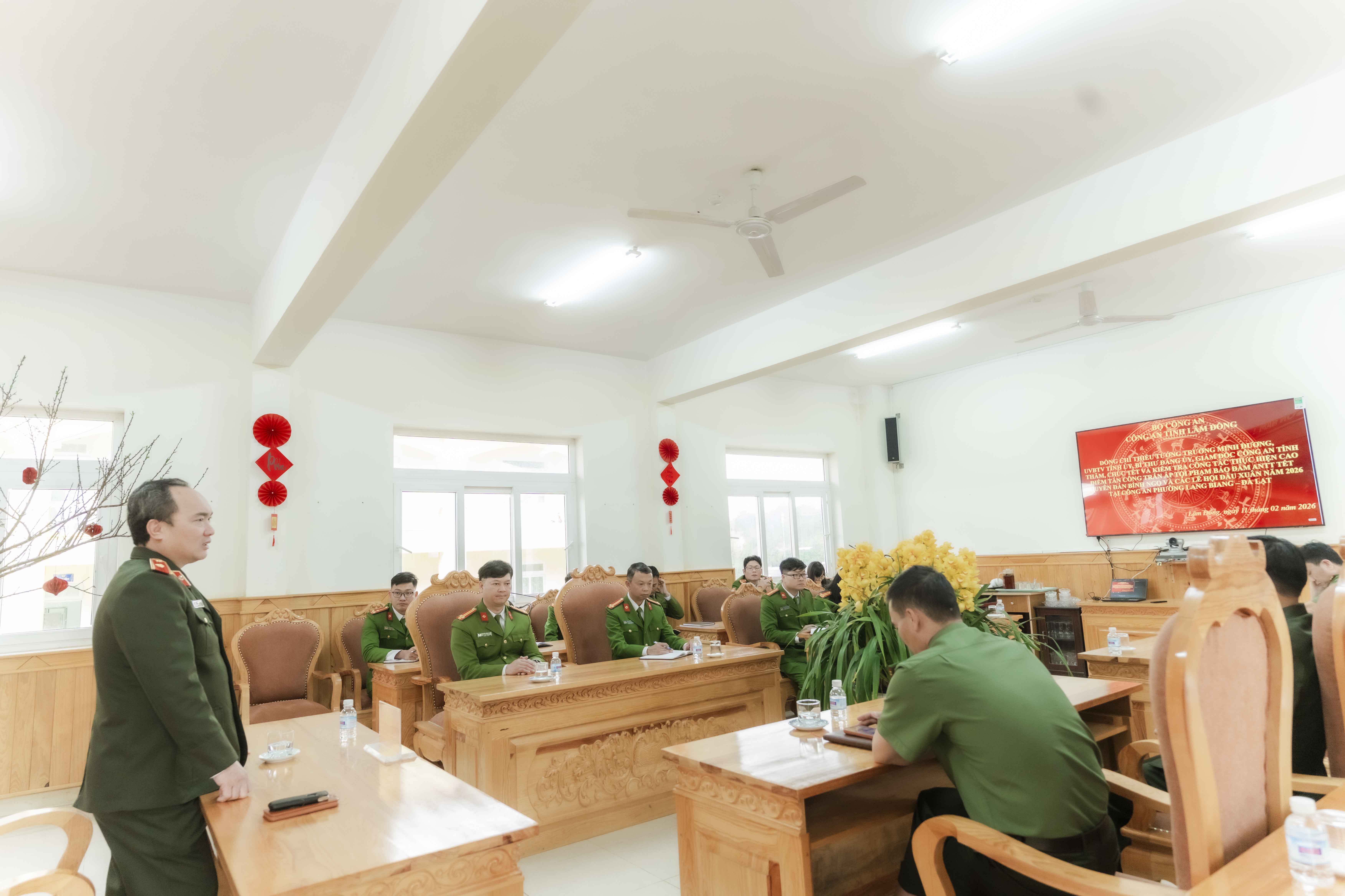 Bên cạnh những mệnh lệnh nghiêm khắc, Giám đốc Công an tỉnh cũng dành những lời chia sẻ đầy cảm xúc đối với những khó khăn của anh em chiến sĩ tại cơ sở. Tại Công an phường Cam Ly – Đà Lạt, nhìn cơ sở vật chất còn nhiều hạn chế, Thiếu tướng thấu hiểu và động viên: "Biết là anh em trực Tết sẽ vất vả, gia đình sẽ có chút thiệt thòi, nhưng vì nhiệm vụ chung, vì sự bình yên của nhân dân, chúng ta phải đoàn kết, quyết tâm."
