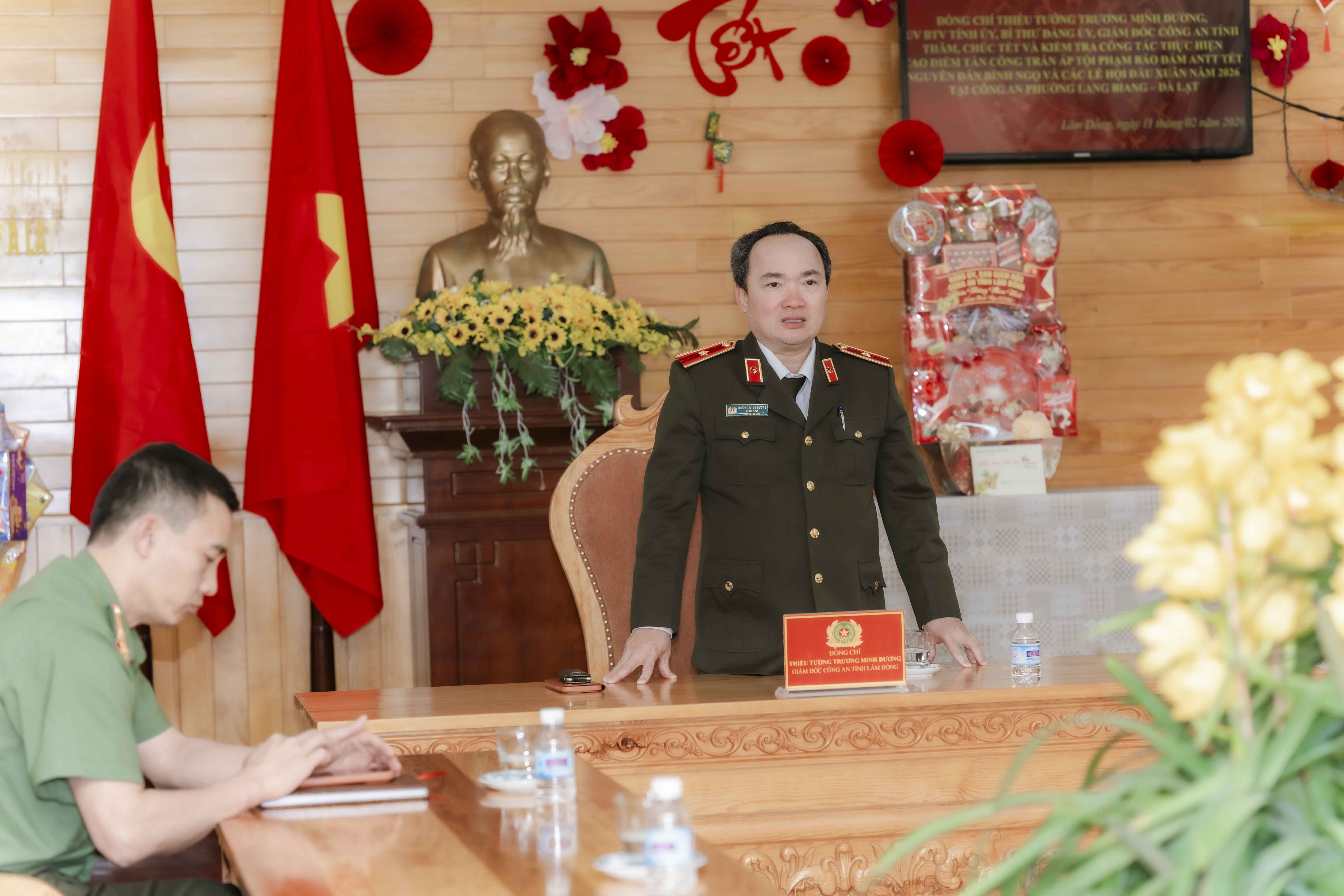 Trong 2 ngày 11 và 12/2/2026, Thiếu tướng Trương Minh Đương - Ủy viên BTV Tỉnh ủy, Bí thư Đảng ủy, Giám đốc Công an tỉnh cùng đoàn công tác phòng Tham mưu, Phòng Công tác Chính trị đã có chuyến kiểm tra đột xuất mang theo "lửa" nhiệt huyết đến với lực lượng Công an 4 phường tại Đà Lạt.