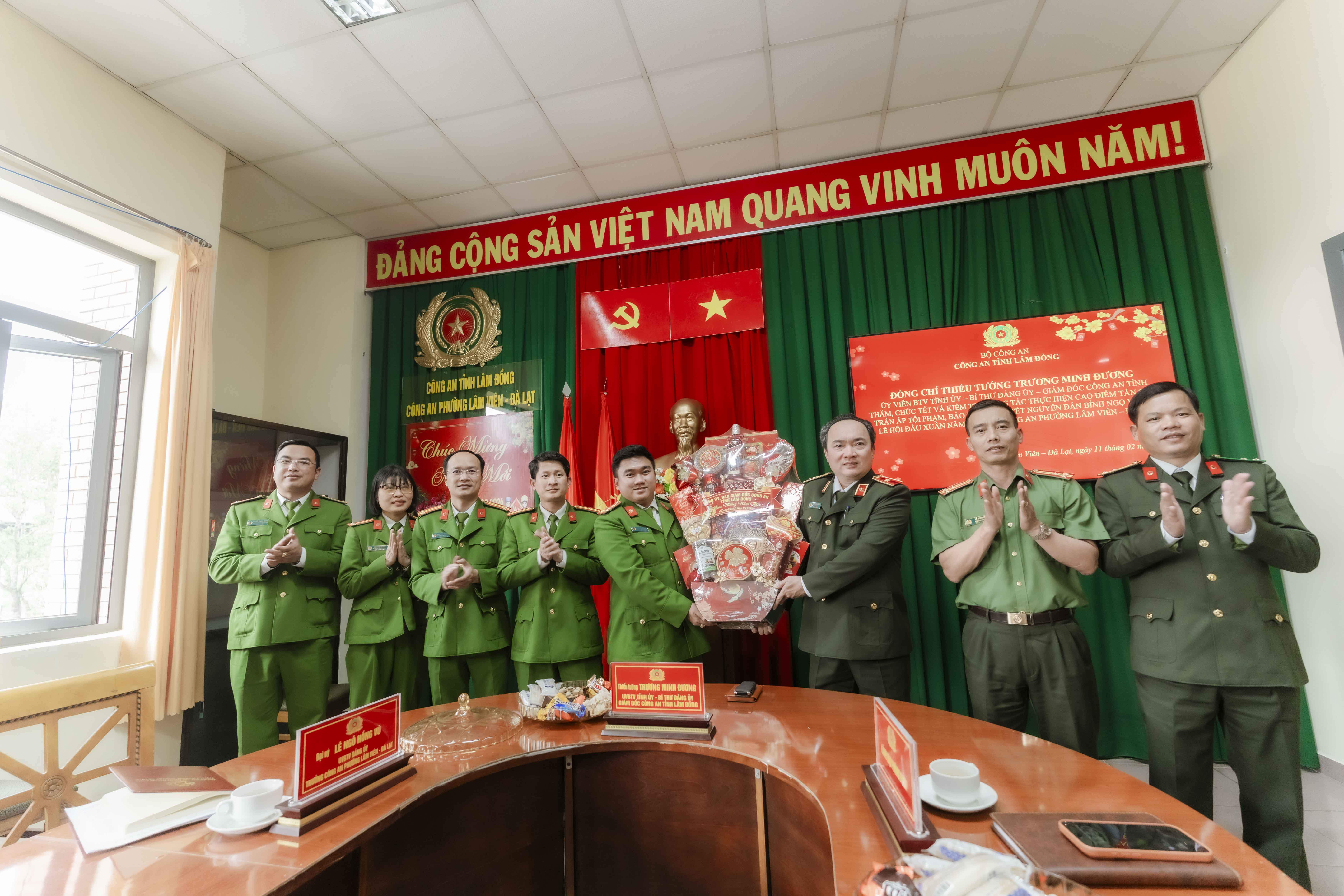 Tại Công an phường Lang Biang – Đà Lạt và Công an phường Lâm Viên – Đà Lạt, đồng chí Giám đốc không chỉ kiểm tra quân số trực ban, trực chiến, nắm bắt tâm tư nguyện vọng của từng cán bộ, chiến sỹ mà đi sâu vào từng kế hoạch, phương án đảm bảo an ninh, trật tự trước, trong và sau Tết.