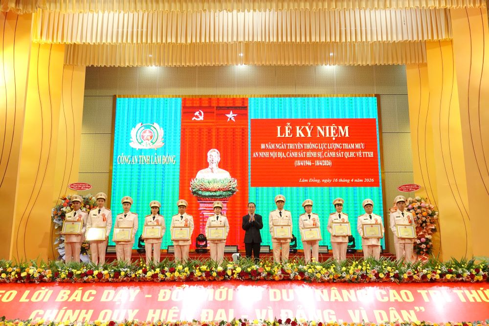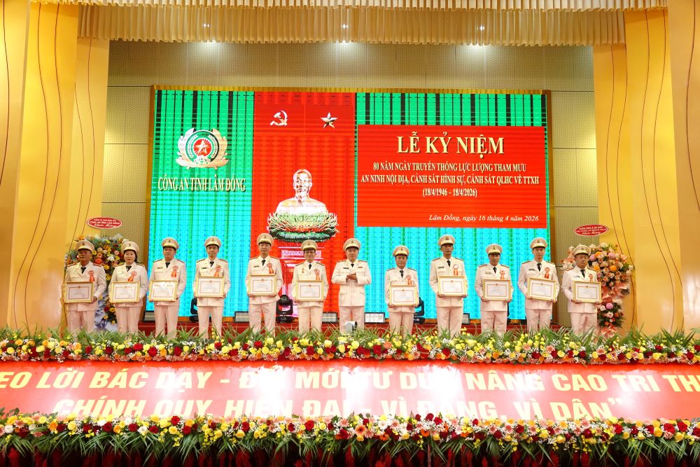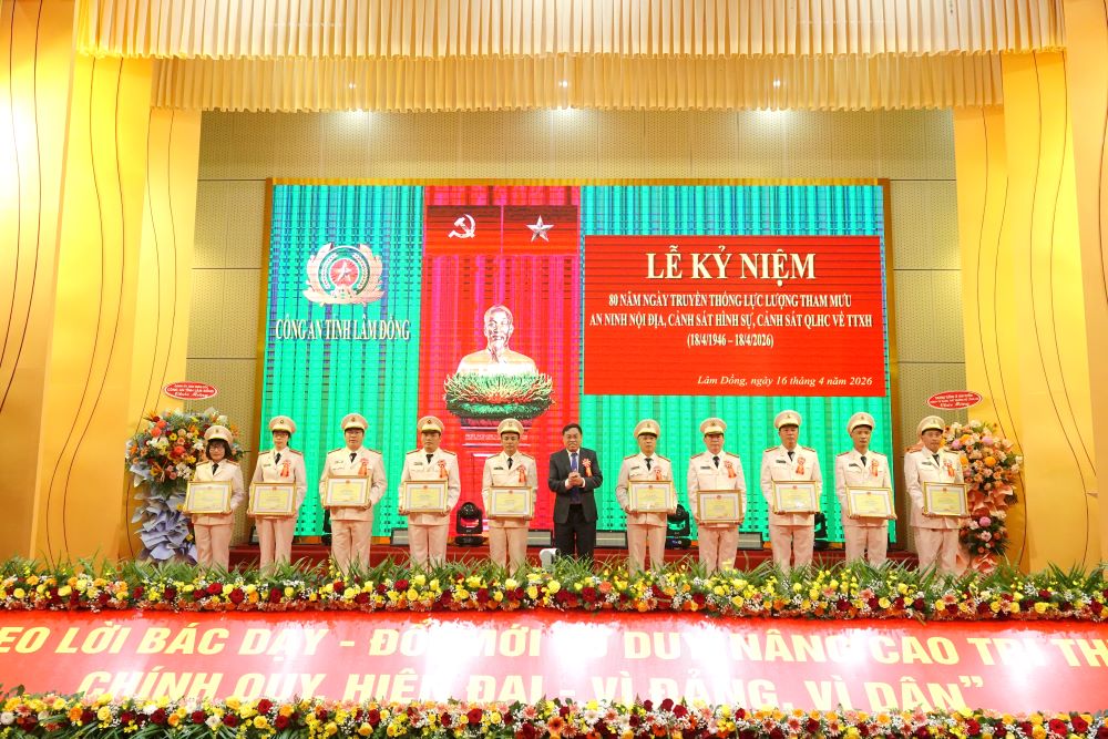 Nhân dịp này, có 06 tập thể và 22 cá nhân được Chủ tịch UBND tỉnh tặng Bằng khen; Giám đốc Công an tỉnh tặng Giấy khen cho 18 tập thể và 115 cá nhân về thành tích xuất sắc trong các mặt công tác công an, góp phần đảm bảo ANTT trên địa bàn tỉnh Lâm Đồng.