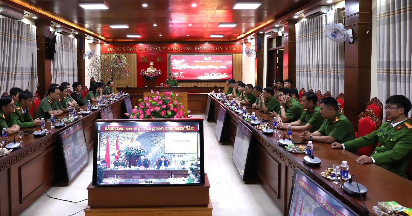 Tại điểm cầu Công an tỉnh Lâm Đồng, dự và chỉ đạo có đồng chí Bùi Thắng, Phó Bí thư Tỉnh ủy; Đồng chí Đinh Văn Tuấn, Phó Chủ tịch UBND tỉnh Lâm Đồng; Thiếu tướng Trương Minh Đương, Uỷ viên Ban Thường vụ Tỉnh uỷ, Bí thư Đảng uỷ, Giám đốc Công an tỉnh; cùng các đồng chí trong Ban Thường vụ, Ban Giám đốc, lãnh đạo các phòng, ban trực thuộc Công an tỉnh. Tại điểm cầu Gia Nghĩa có Đại tá Nguyễn Văn Dũng, Phó Giám đốc Công an tỉnh; Điểm cầu Phan Thiết có Đại tá Trần Văn Mười, Phó Giám đốc Công an tỉnh.