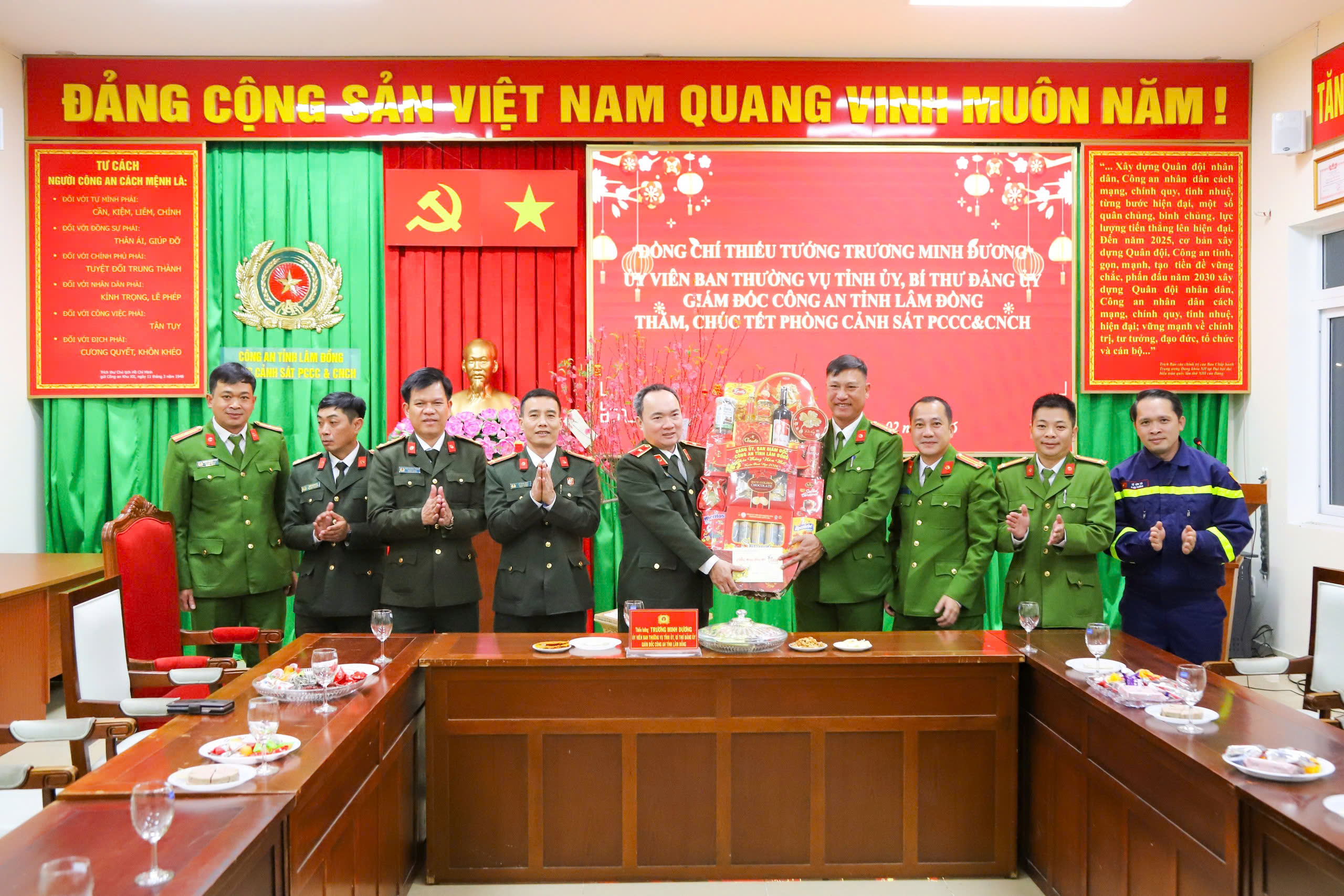 Thiếu tướng Trương Minh Đương, Uỷ viên Ban Thường vụ Tỉnh uỷ, Bí thư Đảng uỷ thăm chúc tết tại phòng Cảnh sát PCCC&CNCH