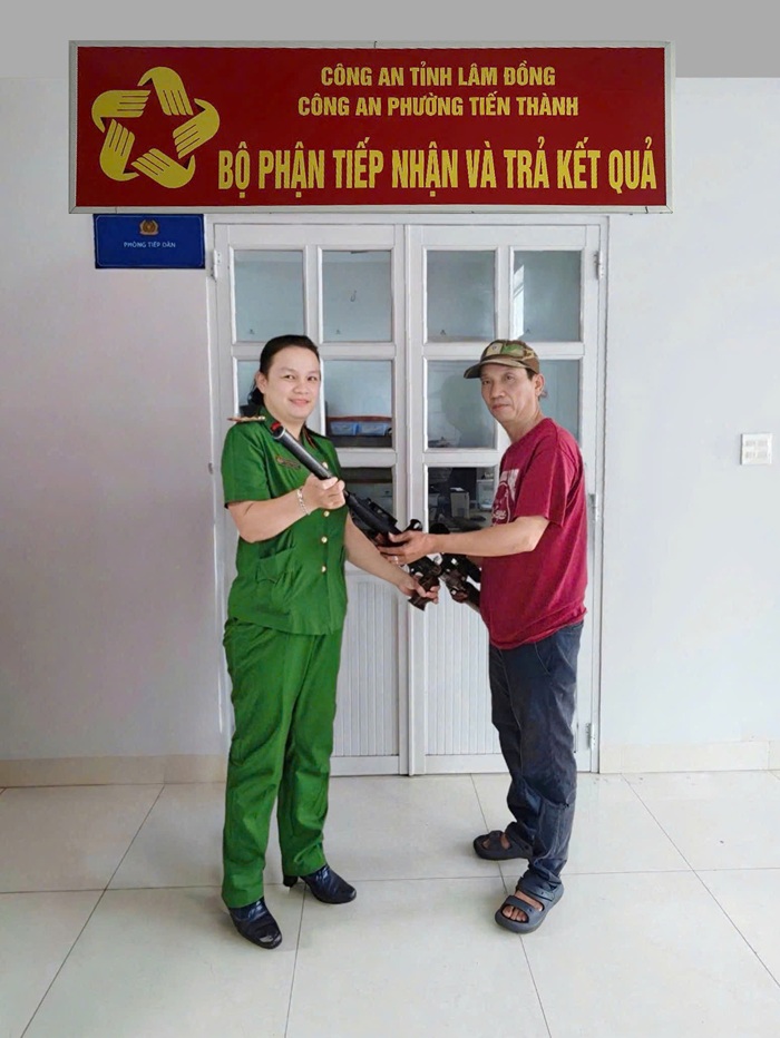 Cụ thể, ngày 12/01/2026, công dân N.M.T (sinh năm 1971, hộ khẩu thường trú: khu phố 1, phường Tiến Thành) đã tự nguyện giao nộp 01 “súng hơi nén” cho Công an phường Tiến Thành -hành động nhỏ nhưng mang ý nghĩa rất lớn, góp phần mang lại cuộc sống bình yên cho mọi nhà. Việc tiếp nhận, quản lý và xử lý các loại vũ khí, công cụ hỗ trợ được Công an phường thực hiện đúng quy trình, bảo đảm an toàn tuyệt đối.