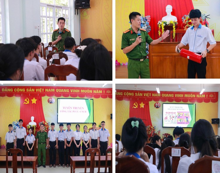 Lồng ghép trong chương trình, đồng chí Trung tá Nguyễn Văn Duy – Phó Trưởng Công an xã đã phổ biến kiến thức phòng cháy, chữa cháy đến học sinh. Bên cạnh phần lý thuyết, học sinh còn được trao đổi, đặt câu hỏi và thực hành một số tình huống giả định, qua đó nâng cao ý thức phòng ngừa và kỹ năng xử lý tình huống thực tế.